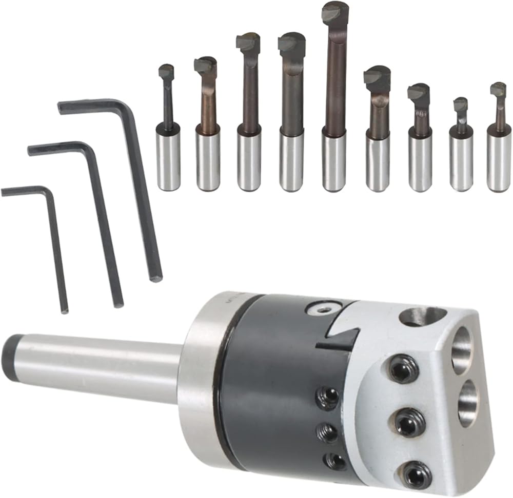 تتضمن المجموعة: رأس ممل 1 × 2 انش، 1 × مجموعة مقبض MT2، 9 × قضبان مملة 1/2 انش و3 × مفاتيح سداسية