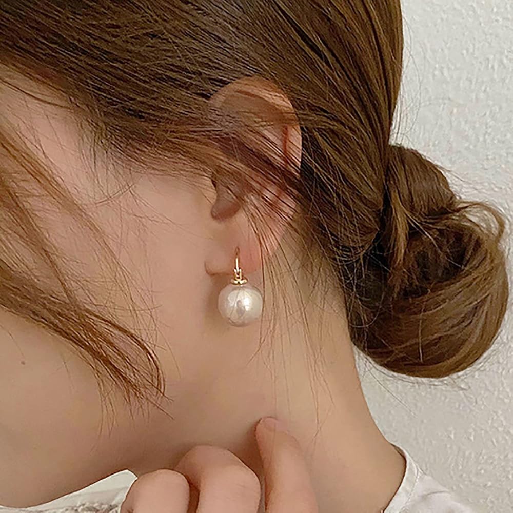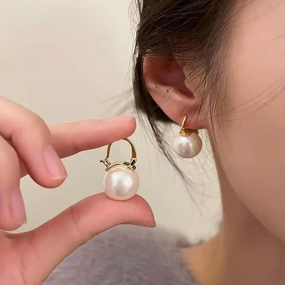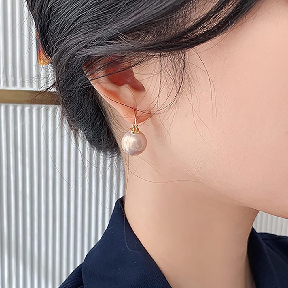 Faux Pearl Earrings for Women Simulated Shell Pearl Drop Earrings Dangle Stud Earrings Gold Plated Hypoallergenic Hoop Earrings Jewelry for Gifts