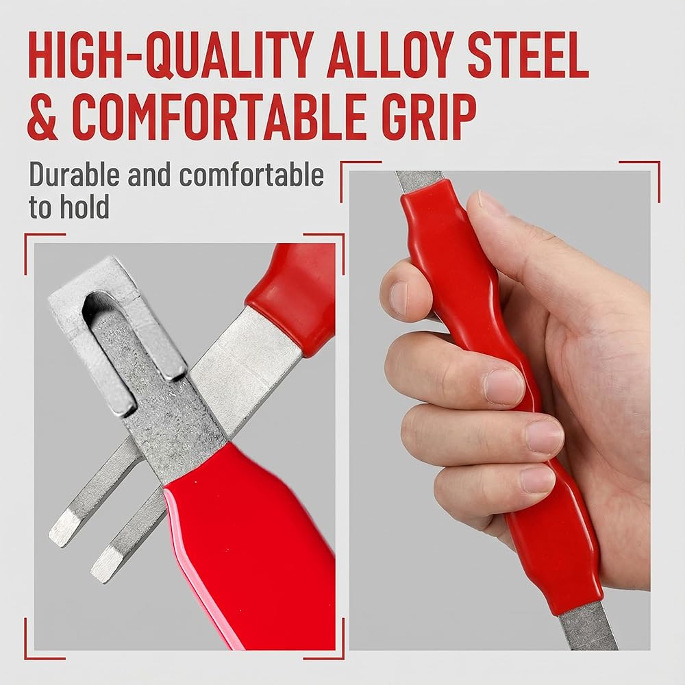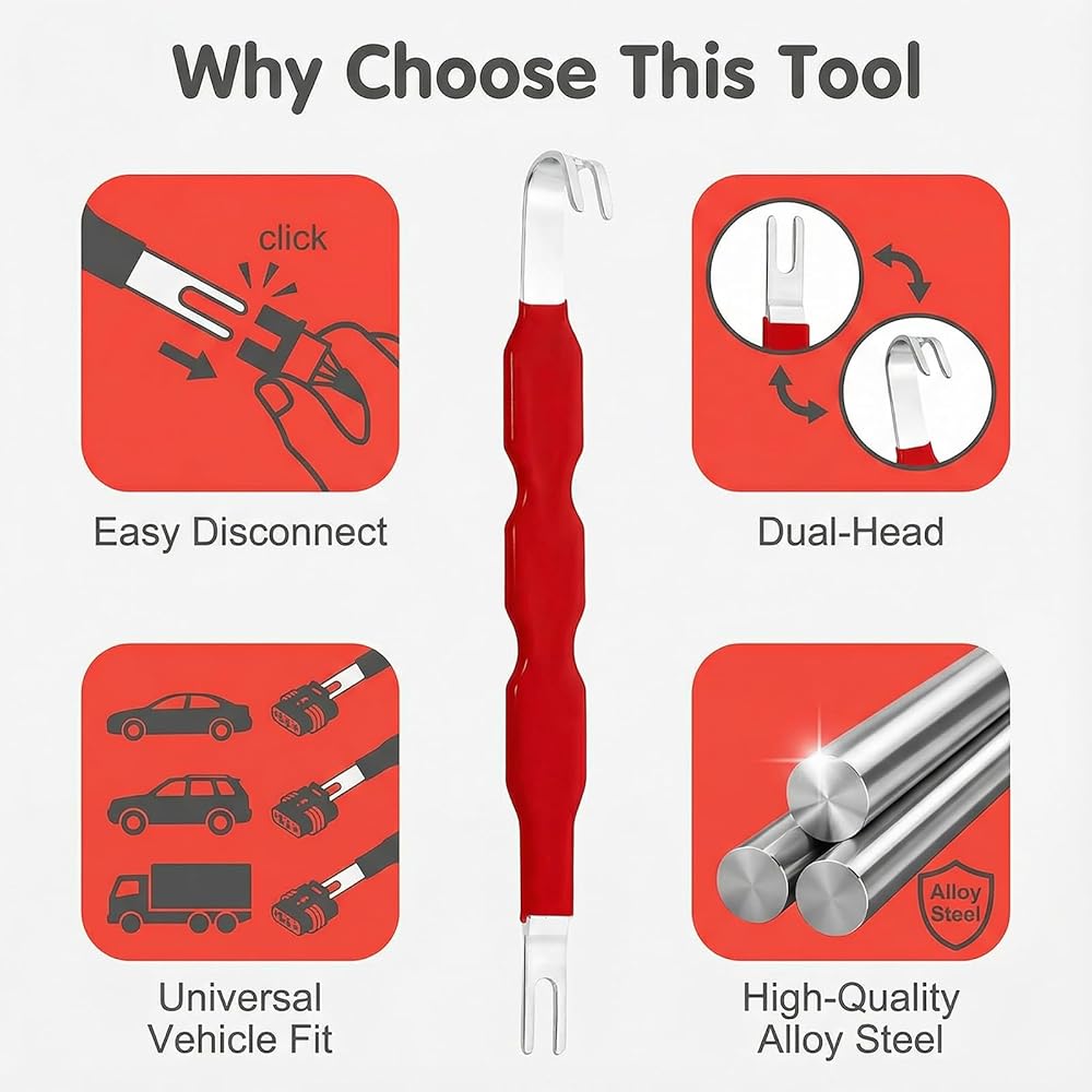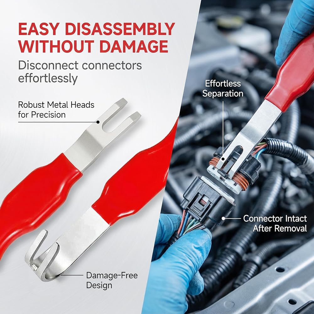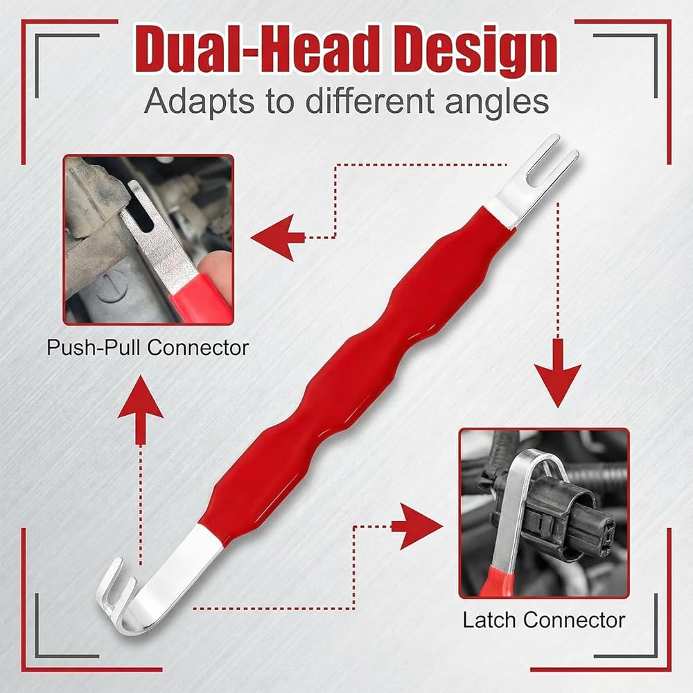 【Premium Durable Construction】Crafted from high-quality rubber and heavy-duty carbon steel, our electrical connector removal tool boasts excellent corrosion resistance and rust proofing, ensuring long-lasting durability even in harsh automotive environments. It withstands extreme high and low temperatures, resists aging, and maintains reliable performance over time, reducing the need for frequent replacements.