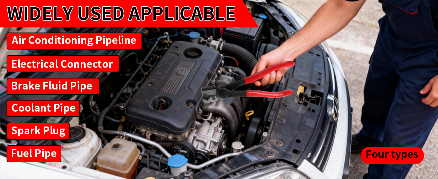 مجموعة كماشة فصل الكهرباء 4 في 1: مجموعة كماشة فصل الكهرباء الكل في واحد تتعامل مع التوصيلات المضبوطة، وأسلاك توصيل الإشعال، ومشابك الخرطوم مع كماشة شديدة التحمل، وفاصل، وكماشة بزاوية 60 درجة، وأداة مزدوجة الأطراف