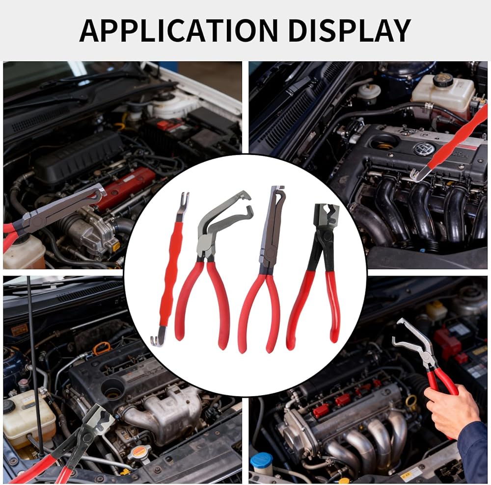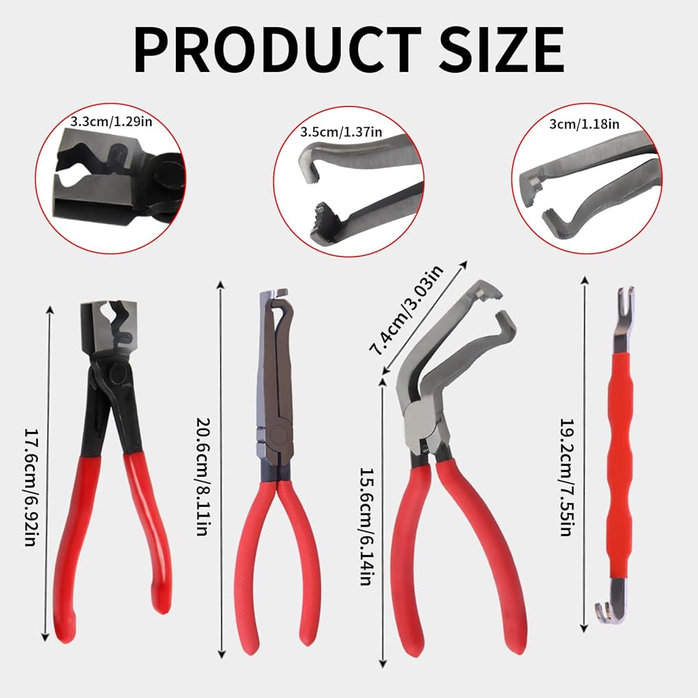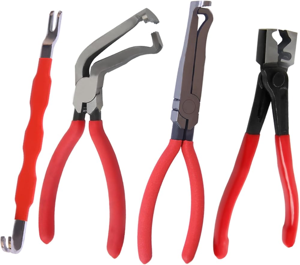 طقم كماشة قطع الكهرباء للسيارات، 4 قطع، أداة إزالة مشبك السيارة، فاصل موصل من الفولاذ عالي الكربون مع كماشة مستقيمة و60 درجة، كماشة مشبك خرطوم، أداة تحرير القابس الكهربائي للسيارة