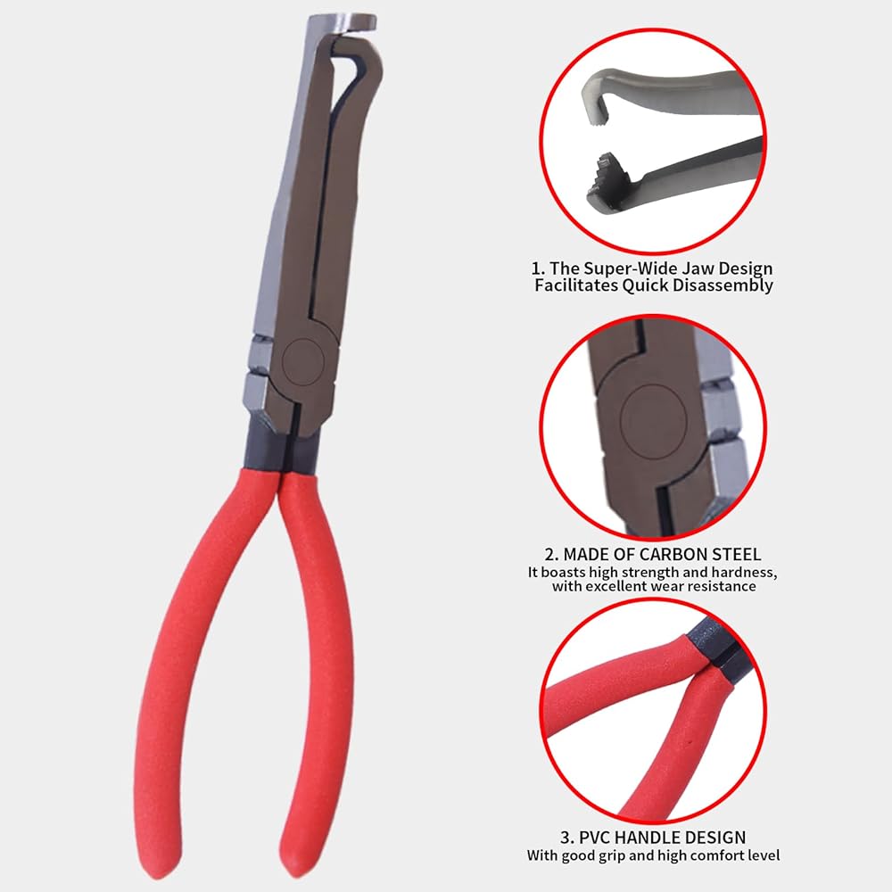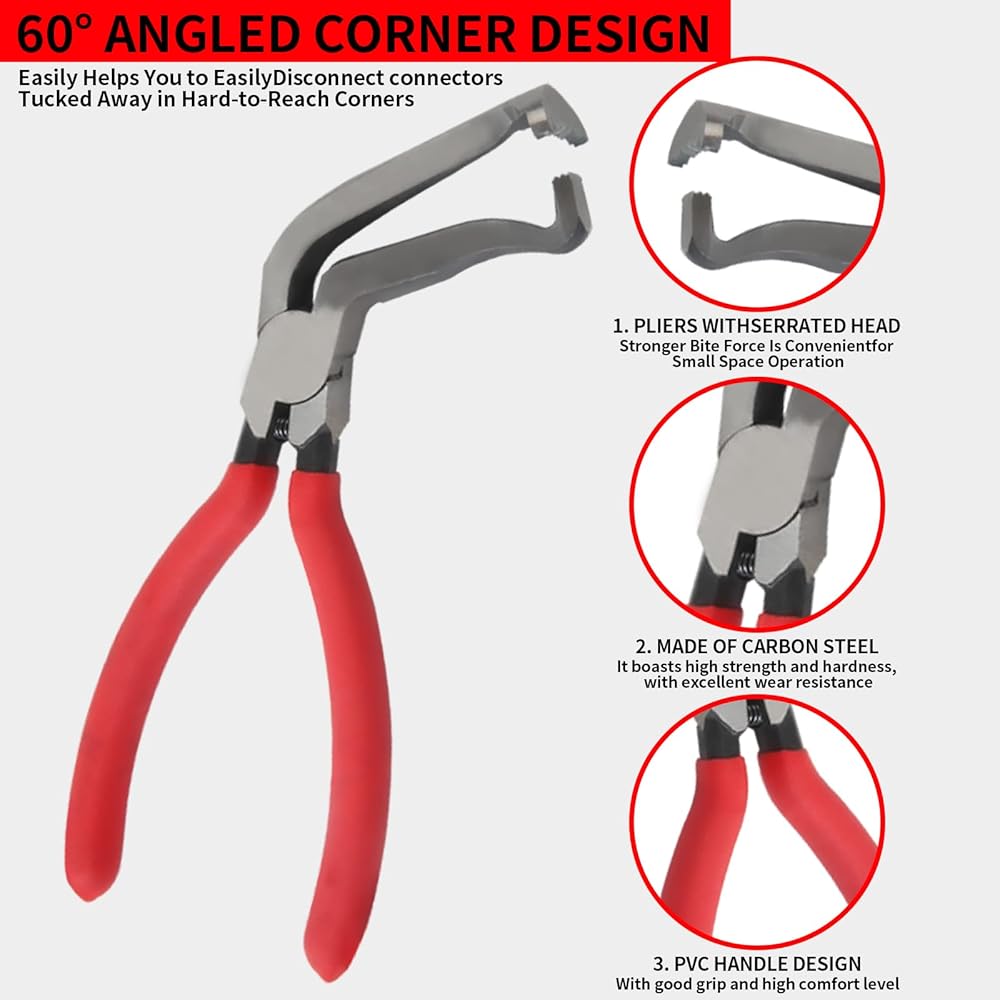 وصول مزدوج الزاوية للمساحات الضيقة: تتميز كماشة فاصل الموصل المصنوعة من الفولاذ عالي الكربون بزاوية 60 درجة برؤوس بزاوية 60 درجة وزاوية قائمة. يمكنك الوصول بيد واحدة إلى حاقنات الوقود ومقابس وحدة التحكم الإلكترونية وغيرها من مساحات المحرك الضيقة