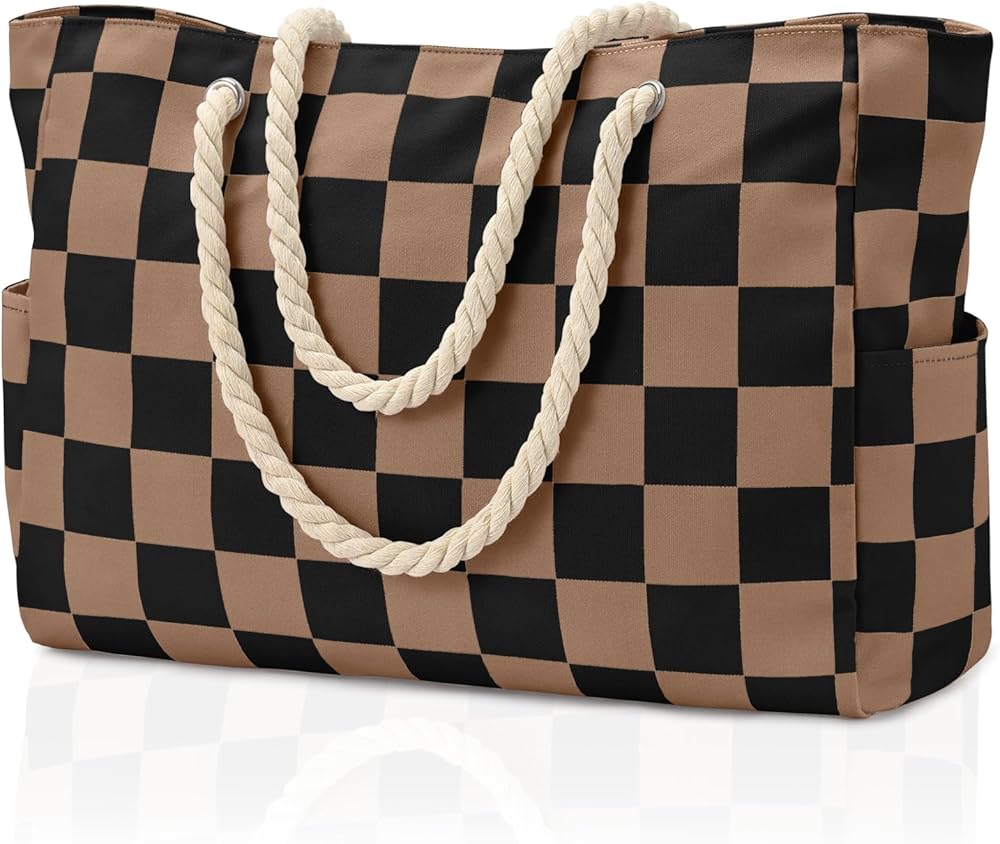 أساسيات إجازة الشاطئ: تتميز حقائب الشاطئ النسائية بنمط مربعات كلاسيكي - وهو اتجاه خالد يجذب انتباه أي حشد من الناس دون عناء. سوف تحب المادة المقاومة للماء، والتي ستبعدك عن العديد من المشاكل. استعد للاستمتاع بوقتك مع حقائب الشاطئ من بيكوكان
