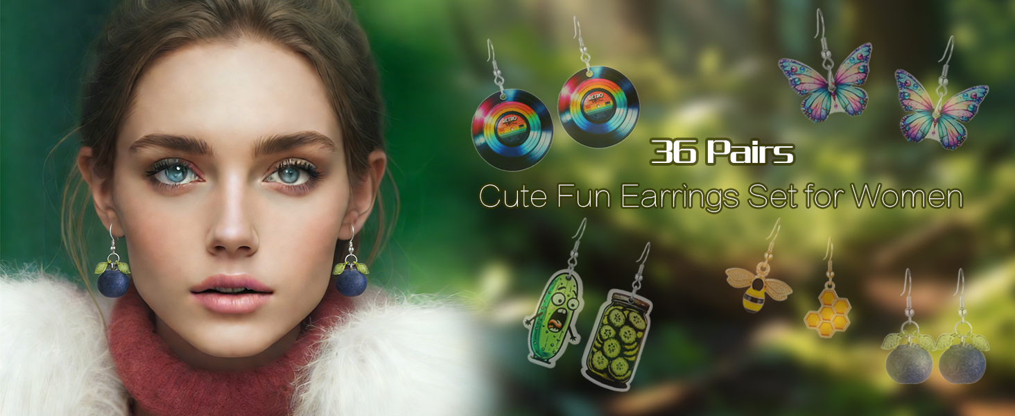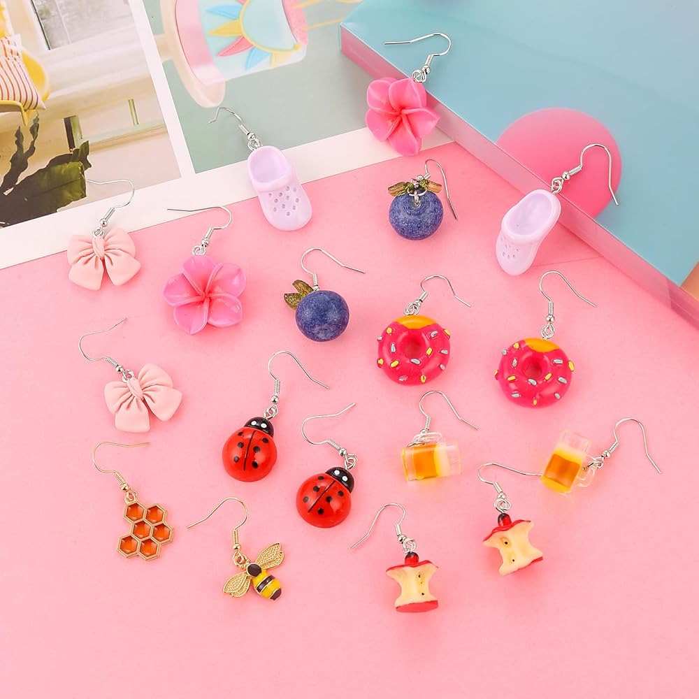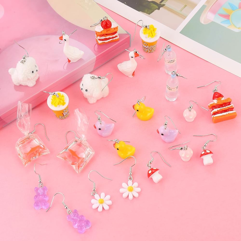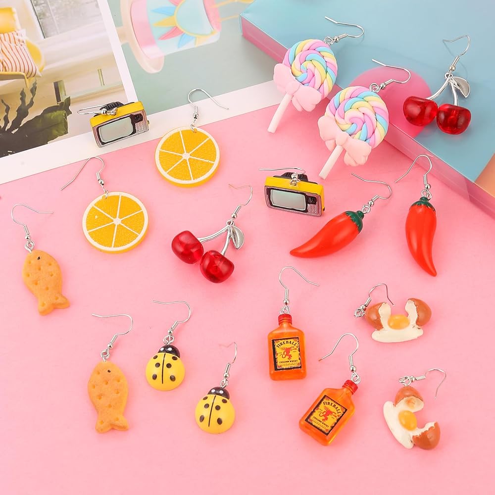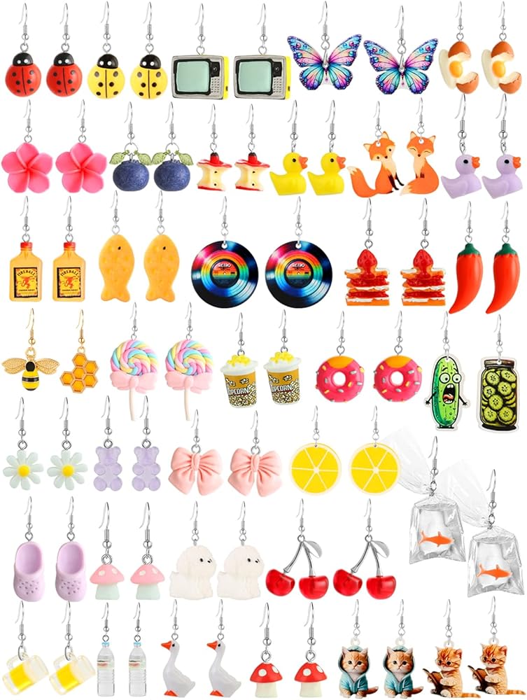 مجموعة 36 زوجًا من الأقراط المرحة اللطيفة للنساء أقراط متدلية رائعة وغريبة مصنوعة من مجوهرات الراتنج العصرية والمضحكة