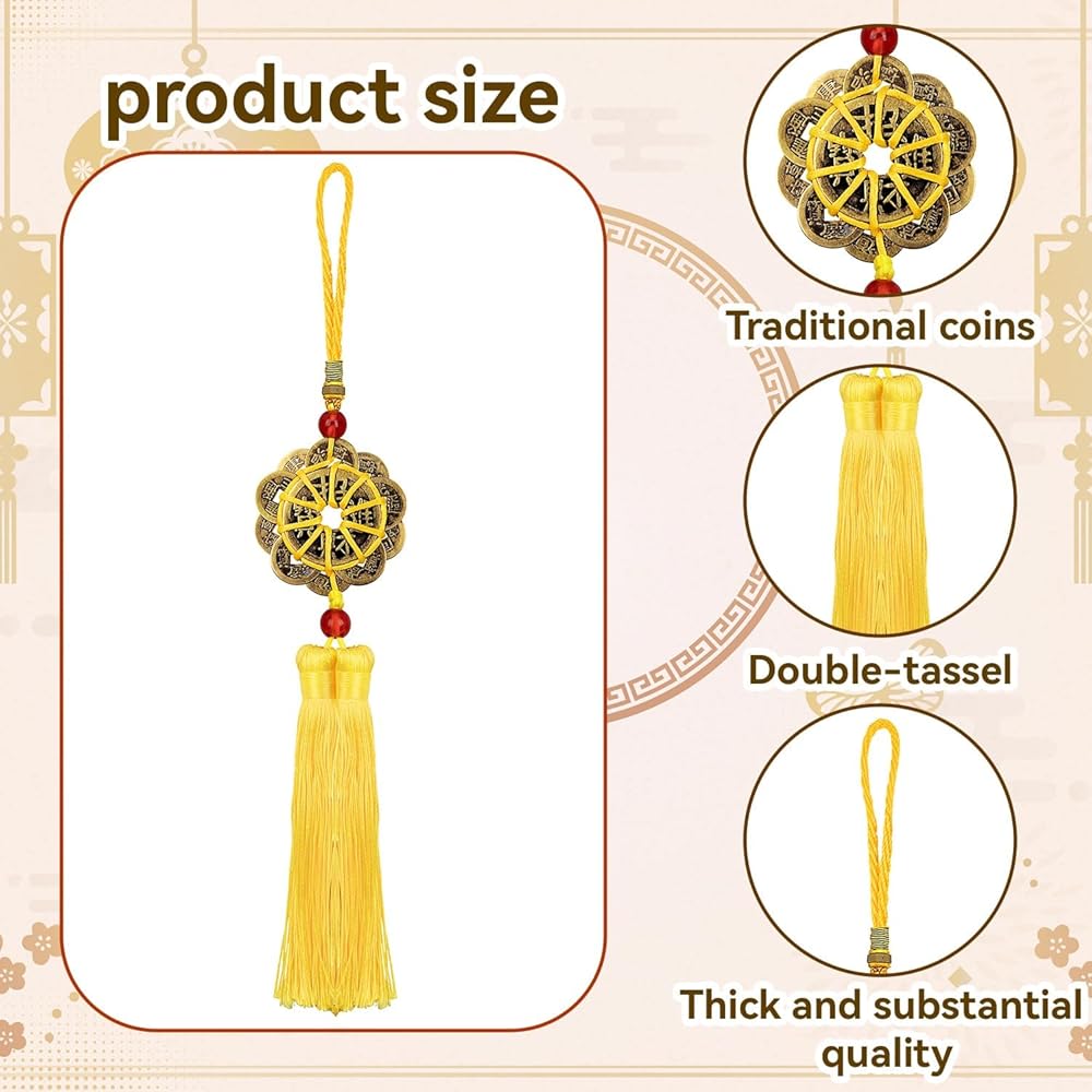 Excellent Quality:This New Year's Ten Emperors' Coins pendant is made of excellent brass material and is paired with exquisitely crafted yellow tassels. It can be used for a long time and will not be easily damaged or faded. It is very suitable for use as a decoration for the New Year.
