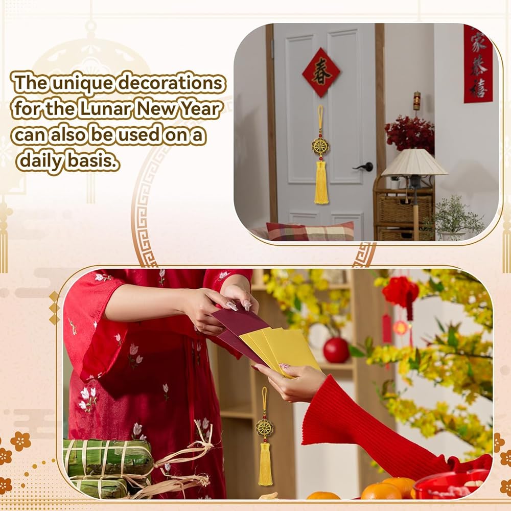 Product Include:As a Lunar New Year decoration, you will receive a Ten Emperors' Coins pendant with yellow tassels, which is very suitable as a door hanging during the Spring Festival and is full of beautiful meaning.
