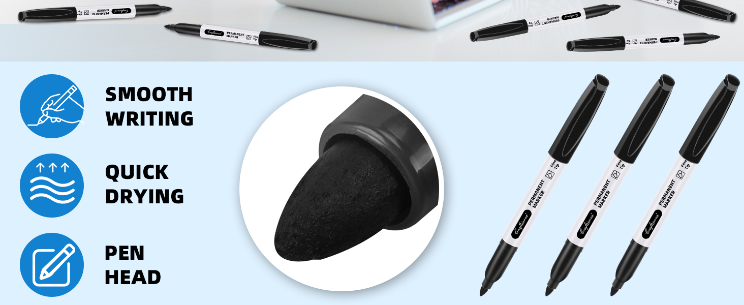 • متينة ومقاومة للبهتان: صُممت هذه الأقلام الدائمة لتدوم طويلاً، وتتميز بحبر يجف بسرعة، ويقاوم الماء والبقع، ويظل جريئًا بمرور الوقت دون أن يبهت.