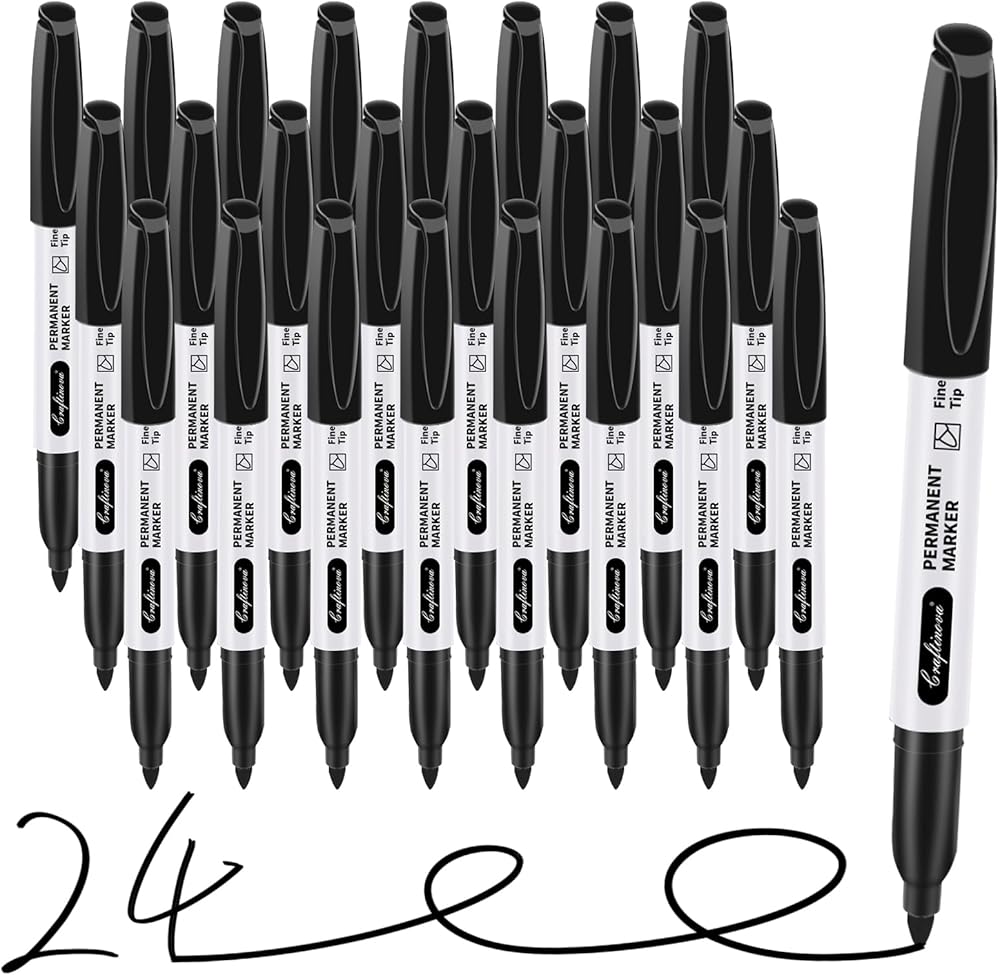 مجموعة أقلام تحديد سوداء دائمة ذات نقاط دقيقة، مجموعة أقلام تحديد ذات أطراف دقيقة، سريعة الجفاف ومقاومة للبهتان، تعمل على الخشب والبلاستيك والورق والمعادن للفصول الدراسية والمكتب والمنزل، 24 قطعة in Kuwait