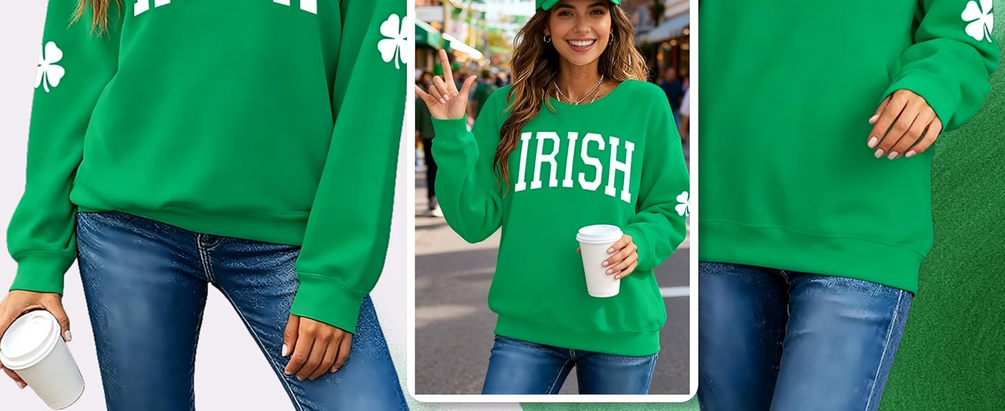 Material : This st patrick's day clover sweatshirt is made of high quality, the fabric is super soft, breathable, skin-friendly, It won't shrink or discolor after wash, the soft material could make you feel more comfy and relaxed.st patricks day sweatshirt women