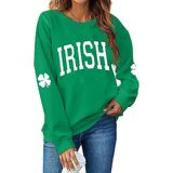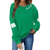 Features: St. Patrick's day Irish clover print sweatshirt, with cute four leaf clover printed on sleeves, st patricks day sweatshirt women is designed with classic o neck, cute Irish letters print, long sleeve tops, casual style and relaxed fit. The Shamrock & Clover print makes you cute and charming