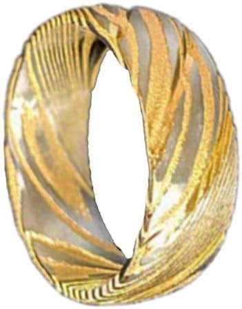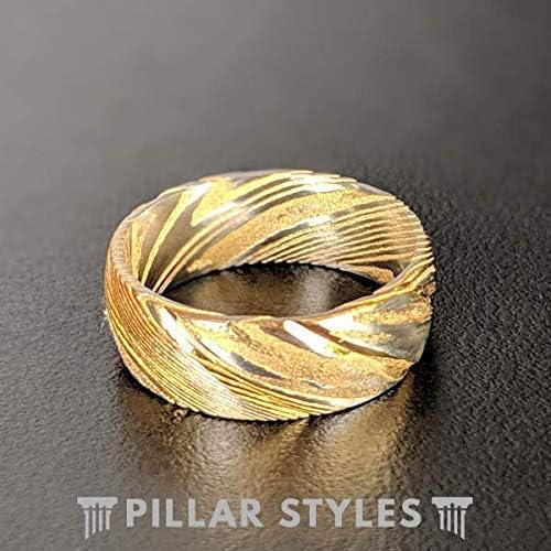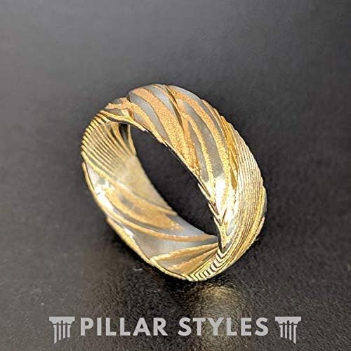 Stunning 14K yellow gold and silver forged Damascus steel craft a unique 8mm men's wedding band. This Damascus ring is a showstopper and is something you won't find at a local jeweler. It is a ring that makes a statement and it makes an ideal wedding band, anniversary gift, engagement ring, or birthday gift. The swirling yellow gold and silver patterns create a unique, undeniable presence when being worn - it looks even better in person. Wear your 8mm wedding ring with absolute confidence, knowing it's protected by our comprehensive lifetime warranty.
