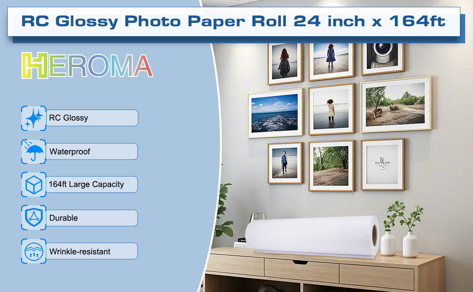 حجم المنتج: يبلغ عرض لفة ورق الصور اللامعة HEROMA 24 بوصة ويبلغ طولها الإجمالي 164 قدمًا. الوزن 260 جرام.