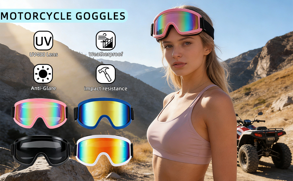 【High-Quality Goggles】These motorcycle goggles feature PC coated lenses and are suitable for men, women, teens, and adults of all ages. Ideal for various outdoor activities including motorcycle, dirt bike, cycling, skiing, ATV riding, and biking.