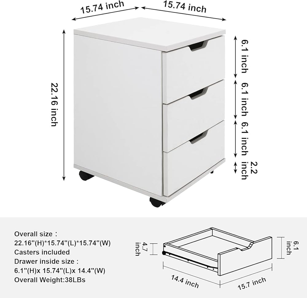 【Assembled dimension and Weight】Overall size is 22.16"(H)*15.74"(L)*15.74"(W)Casters included. Drawer size is: 6.1"(H)x 15.74"(L)x 14.4"(W),Overall Product Weight is 38LBs. Weight Capacity: 250lbs