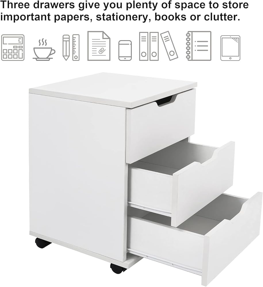 ComeWay 3-Drawers Vertical Filing Cabinet, Under Desk Filing Cabinet with Wheels, Fully Assembled Wood Storage Dresser with Casters for Home Office, White