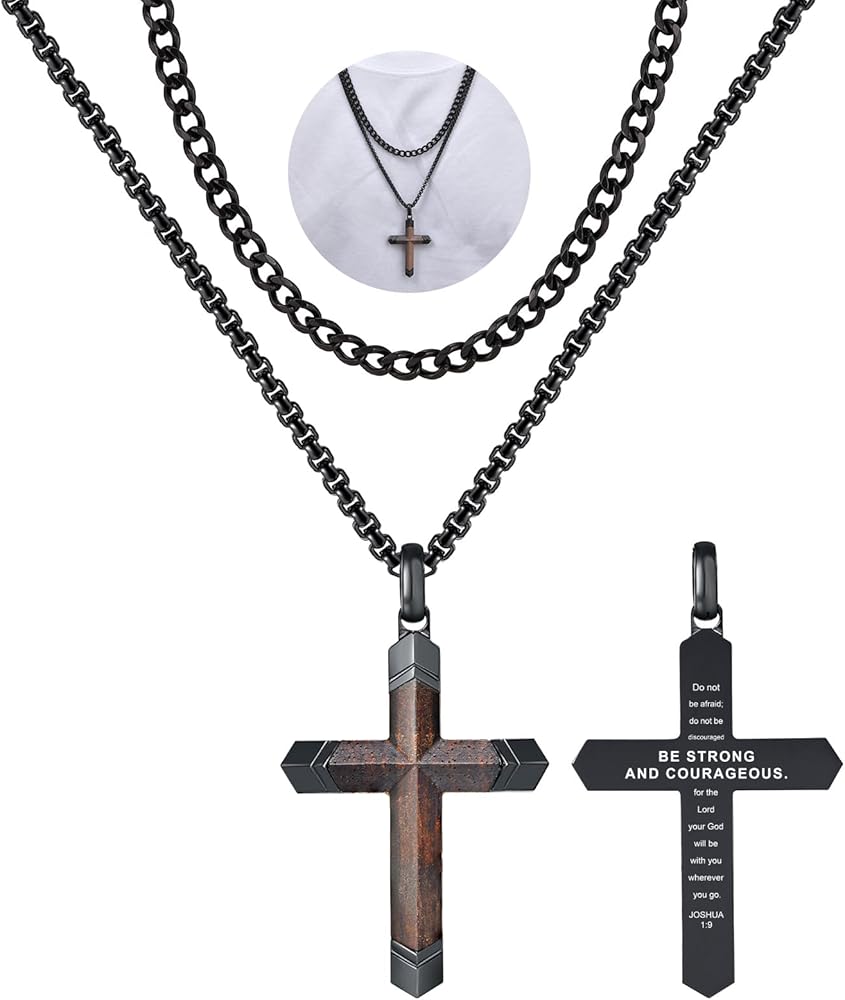 ❤ 【ذكري وفريد من نوعه】يأتي مع صندوق مجوهرات أنيق وقلادة متقاطعة مقاس 55.88 سم وسلسلة مقاس 60.96 سم. القلادة المتقاطعة الرجالية جيدة الصنع، كبيرة بما يكفي لتنزلق فوق الرأس دون الحاجة إلى المشبك/فك المشبك ولكنها ليست كبيرة جدًا بحيث يتم تعليقها بشكل منخفض. مظهر قوي ومتين للغاية ومذكر للغاية. سوف تحصل على الكثير من الإطراء والتركيز عند ارتدائه.