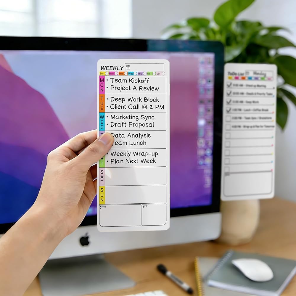[نظرة سريعة على الإنتاجية المحسنة]: - احتفظ بالمهام والملاحظات والتذكيرات مرئية بسهولة على شاشتك! تساعدك لوحة المذكرات المغناطيسية القابلة للمسح الجاف على البقاء منظمًا وتعزز الكفاءة. لا مزيد من البحث عن الملاحظات اللاصقة المفقودة