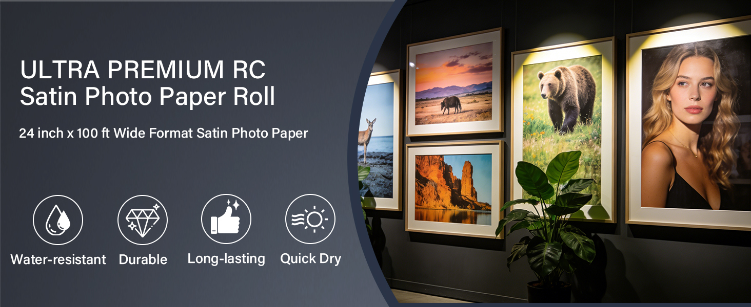 RCdepot1-1 × لفة ورق صور RC Satin Premium مقاس 24 بوصة × 100 قدم طباعة نفث الحبر بتنسيق واسع (ترقية جديدة، طبقة مطلية بالراتنج في الخلف، أكثر متانة ومقاومة للماء، لا يسهل الحصول على التجاعيد) سريع الجفاف