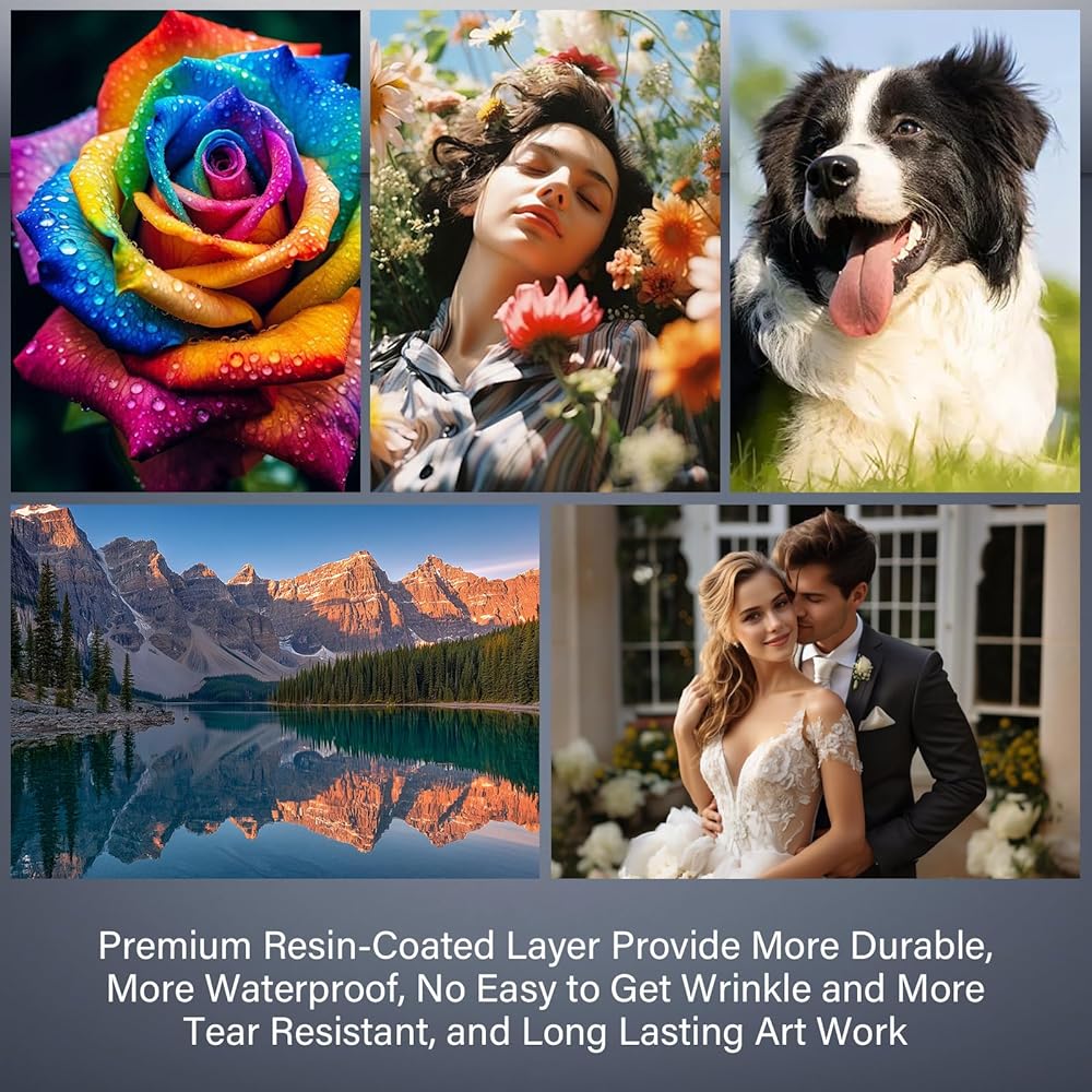 ورق صور RC احترافي فاخر مطلي بالراتنج النافثة للحبر، إصدار ترقية جديد، طبقة فيلم مطلية بالراتنج في الخلف، أكثر متانة، أكثر مقاومة للماء، ليس من السهل الحصول على التجاعيد وأكثر مقاومة للتمزق