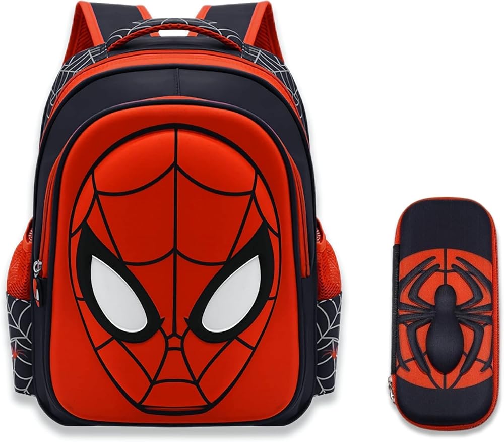 حقيبة مدرسية على شكل عنكبوت كرتوني مع مقلمة - ثلاثية الأبعاد، مقاومة للماء، ذات سعة كبيرة للأولاد في المدارس الابتدائية (14 بوصة) in Kuwait