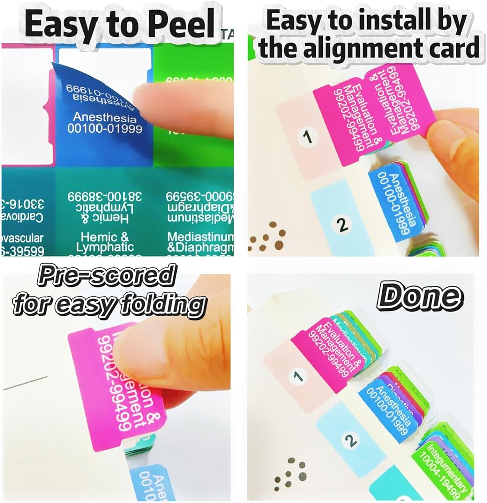 COMPLETE SET: New Upgraded CPT 2026 Professional Edition Tabs (AMA Version) 4 sheets, 1 Bookmark, 1 Tab alignment guide. we include the page numbers above the tabs to show you where to stick tabs, you can access the important information very conveniently.