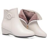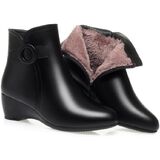 حذاء نسائي شتوي دافئ بنعل سميك للكاحل من الجلد الناعم بإبزيم أنيق مبطن بالكامل بالفرو حذاء الثلوج السميك مع سحاب جانبي