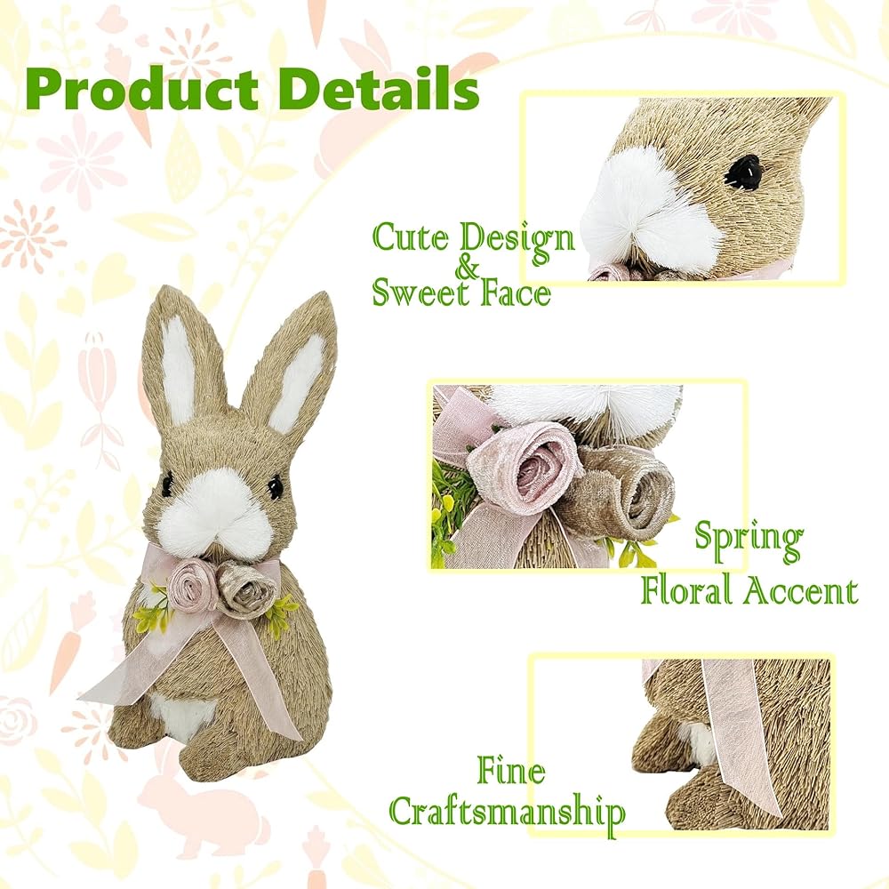 [جودة ممتازة] السيزال المختار بعناية، إلخ. مواد مؤهلة على جسم من البولي فوم، مصنوعة يدويًا بحرفية متقنة، إنها زخارف جميلة ومميزة لعيد الفصح للطاولة، وهي أيضًا ديكور لبيت المزرعة قابل لإعادة الاستخدام لعيد الفصح