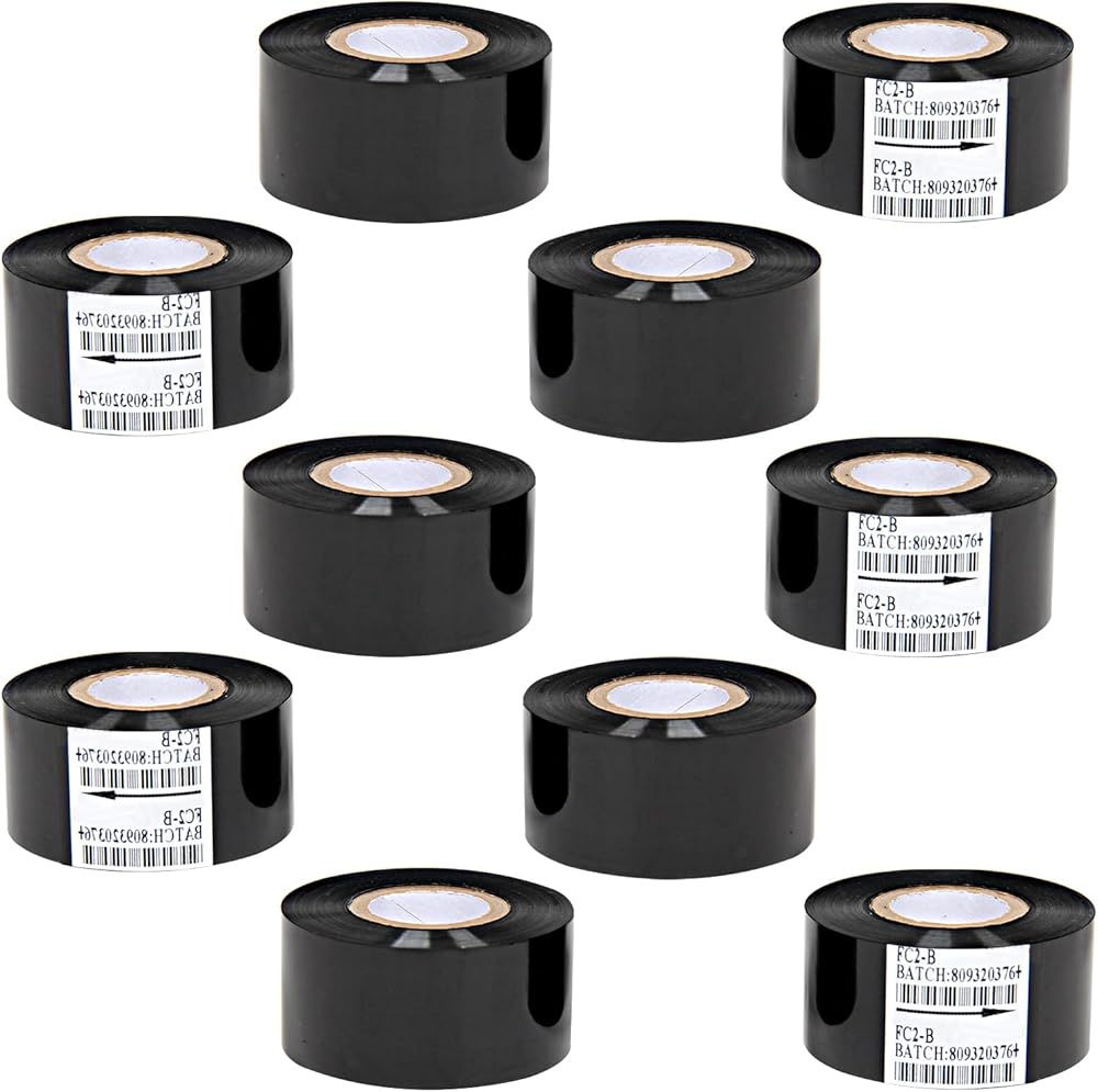 10 Rolls 30mm x 100m Black Thermal Transfer Ribbon Resin for Coder Printer Machine, Black Color Ribbon for Coding Printing Machine