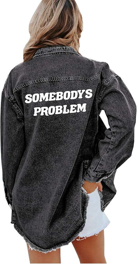 Somebodys Problem raw hem black denim shirt jacket. Perfect for your next concert or event! BFF with your friend and get matching jackets.