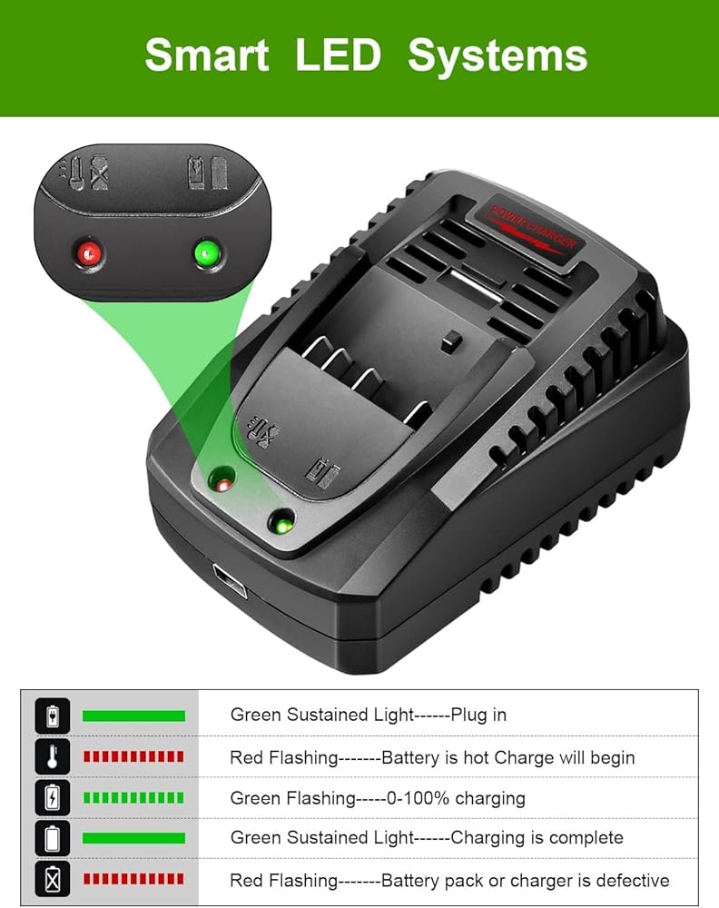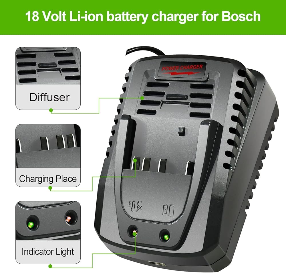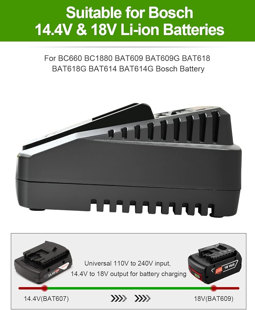 4 【متوافق واسع】شاحن بطارية متوافق مع بطاريات Bosch 18 فولت و14.4 فولت: BAT609، BAT609G، BAT618، BAT618G، BAT610G، BAT614، BAT614G، BAT619، BAT619G، BAT038، BAT040، BAT041، BAT140، BAT159، BAT607، بات609،بات609جي 、BAT614 、BAT614G وأكثر من ذلك