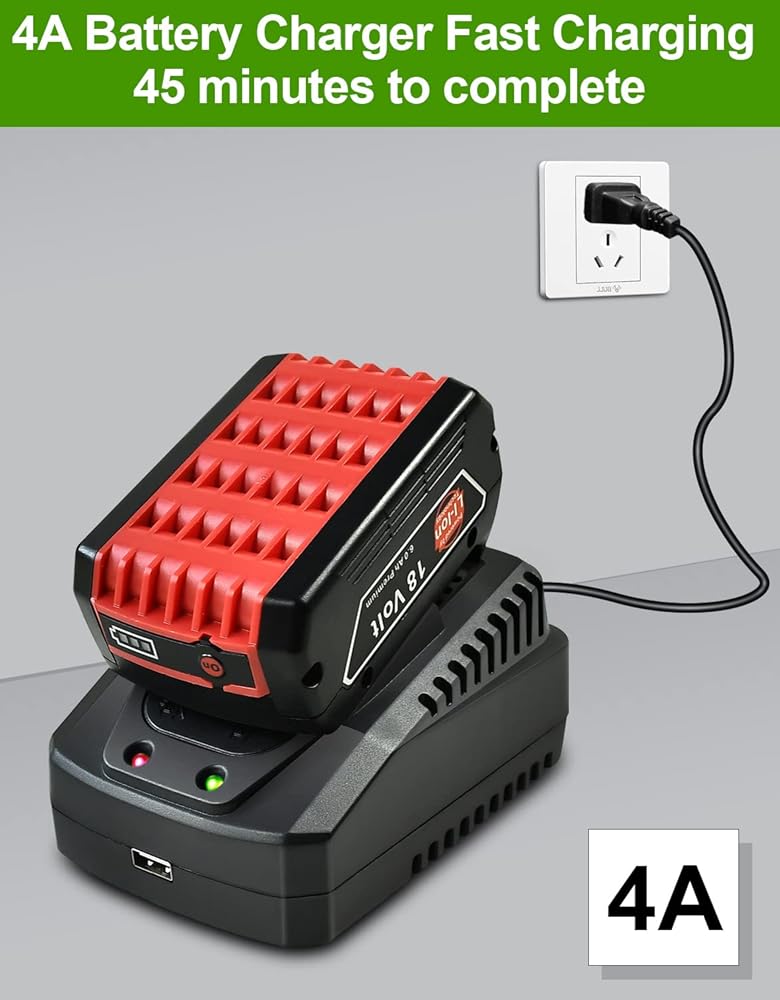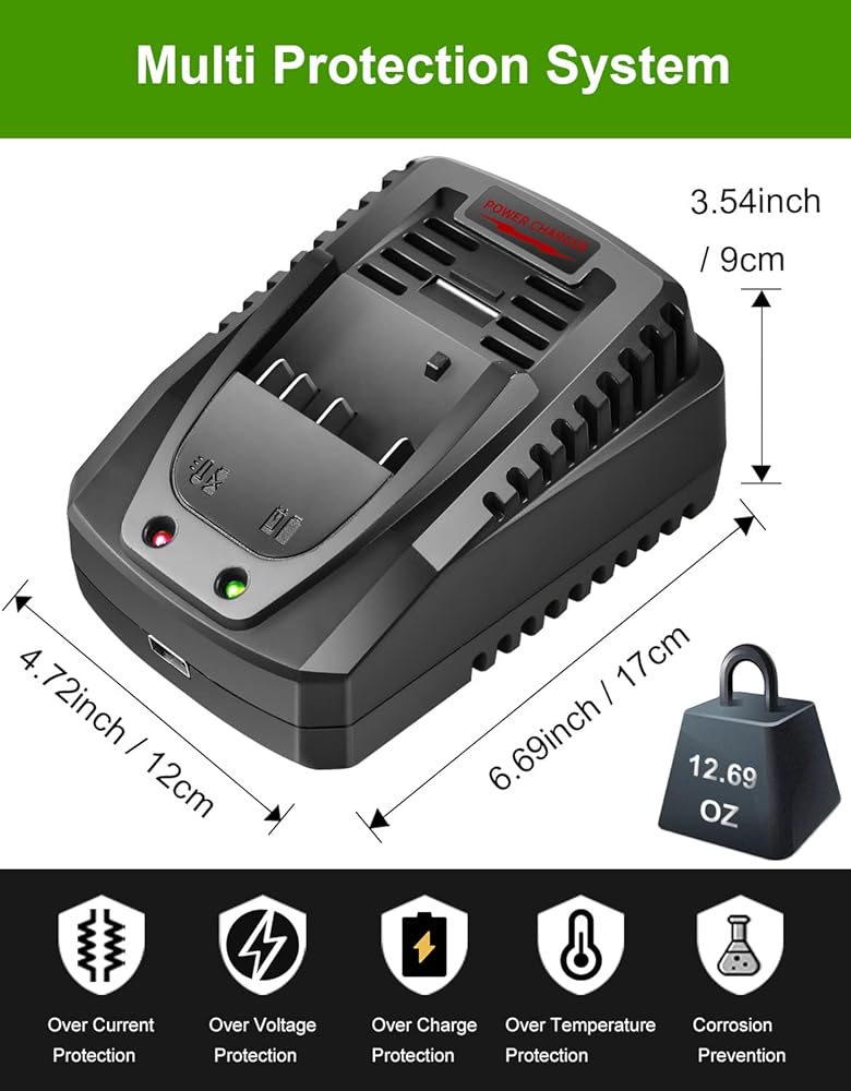 1 【شاحن سريع عالمي 】يحتوي شاحن البطارية هذا على نطاق جهد إدخال يتراوح من 110 إلى 240 فولت تيار متردد وجهد إخراج يبلغ 18 فولت و14.4 فولت تيار مستمر. يبلغ تيار خرج الشاحن 4 أمبير كحد أقصى، مما يسمح بالشحن السريع لبطاريات Bosch 18 فولت و14.4 فولت. يمكن شحنها بالكامل خلال 45 دقيقة باستخدام شاحن البطارية هذا.