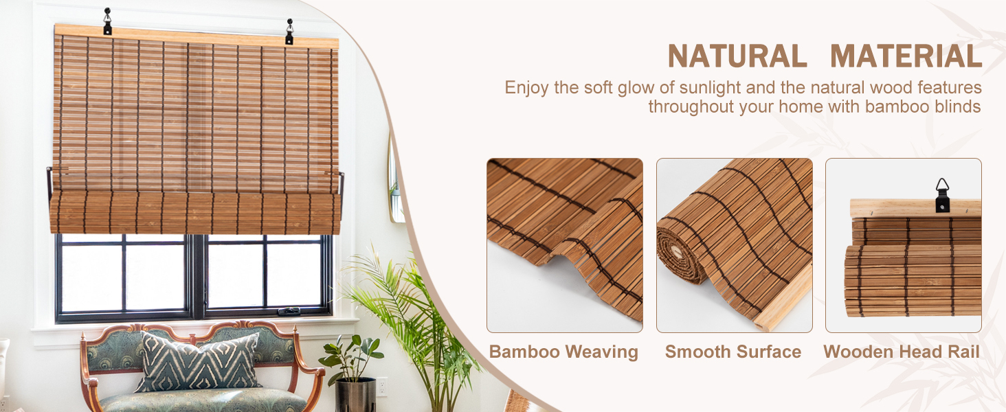 【مادة طبيعية】ستائر الخيزران اللاسلكية مصنوعة من الخيزران الطبيعي والقابل للتحلل البيولوجي، وهي مجهزة بقضيب خشبي لتقديم مظهر جميل. يتم نسج ظلال الخيزران اللاسلكية بدقة وتخضع لدرجات حرارة عالية من الكربنة، وهي قوية ومتينة وغير سامة. حتى عند تعرضها لأشعة الشمس المباشرة لفترة طويلة من الزمن، فإن ستائر النوافذ الرومانية ليست عرضة للتلاشي أو التلف