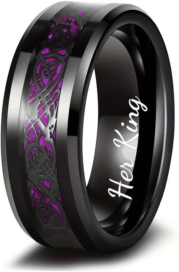 هدية ذات مغزى: هدايا عيد ميلاد فريدة من نوعها لمجوهرات الزوجة، هدايا شخصية فريدة من نوعها لعيد الميلاد للرجال، خاتم زفاف للرجال، وعد خواتم الزفاف، خاتم خطوبة وزواج من التنجستين المنقوش حسب الطلب للرجال، خاتم زفاف رجالي باللونين الأسود والأرجواني. خواتم خطوبة وزواج، منقوشة على حلقات أسماء مخصصة للنساء، خواتم وعد للأزواج المتطابقة وخواتم خطوبة للأزواج المخطوبين حديثًا بشكل فريد. هدية مثالية للأزواج في عيد الحب، أو الذكرى السنوية للزفاف، أو يوم رأس السنة أو عيد الميلاد، أو عيد الميلاد، أو الحفلات، أو الوعد..