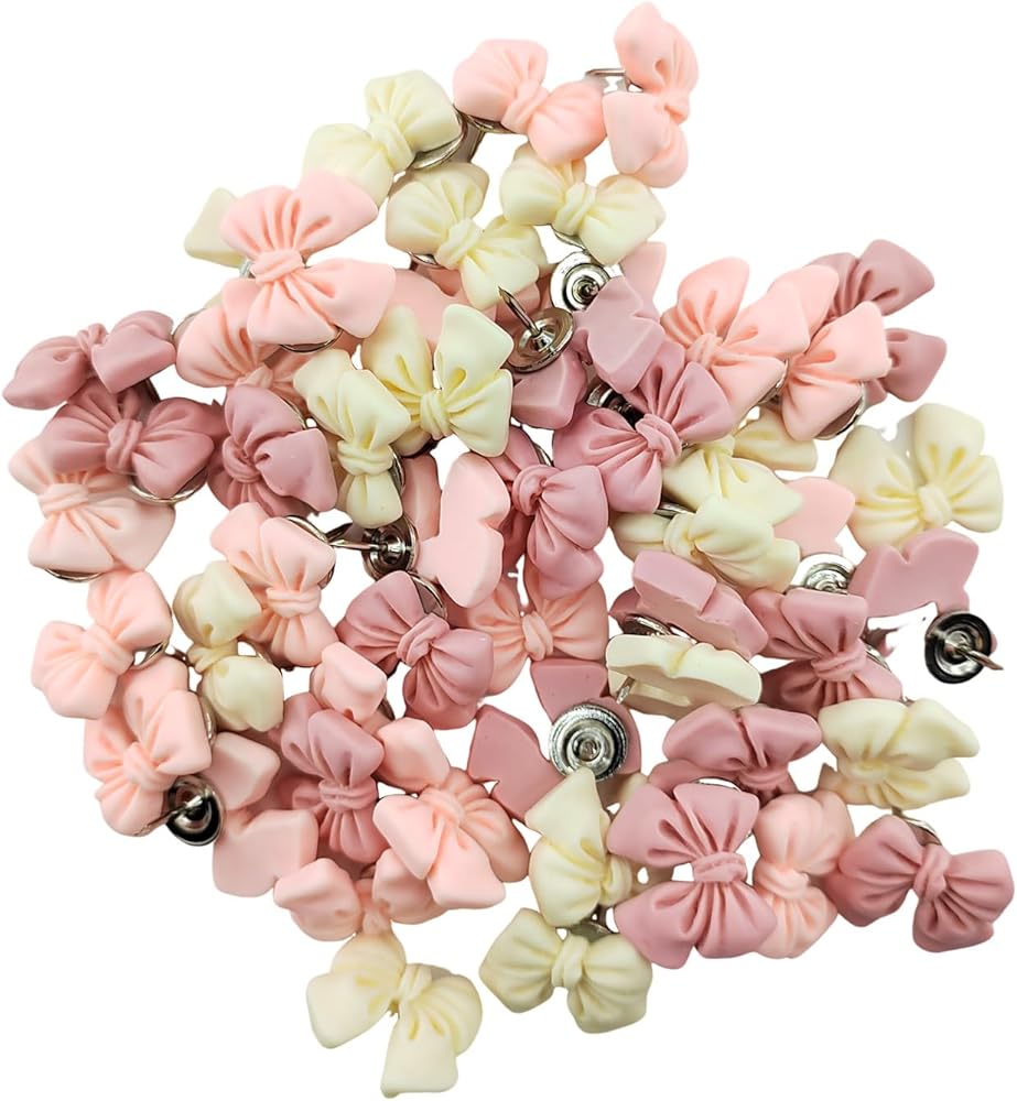 دبابيس دفع على شكل فيونكة وردية - مسامير إبهام لألواح الفلين، دبابيس دفع تزيينية للوحة الإعلانات، مسامير إبهام لتنظيم المكتب أو ديكور المنزل (30 قطعة)