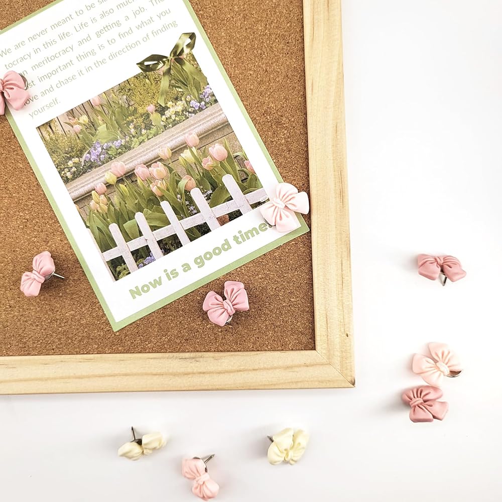 Bow Push Pins,Thumb Tacks for Cork Boards,Bulletin Board Decorative Pushpins,Thumbtacks for Office Organization or Home Decor (30 pcs)