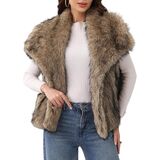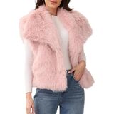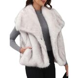 التصميم: سترة من الفرو الصناعي للسيدات، تصميم ياقة على شكل طية صدر، بدون أكمام بسيطة لتصفيف سهل، جيبان جانبيان، البطانة الداخلية مصنوعة من نسيج البوليستر الرقيق، صديق للجلد وجيد التهوية، يمنع التكتل عند ارتدائه على الجسم