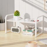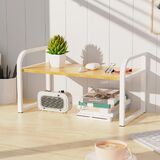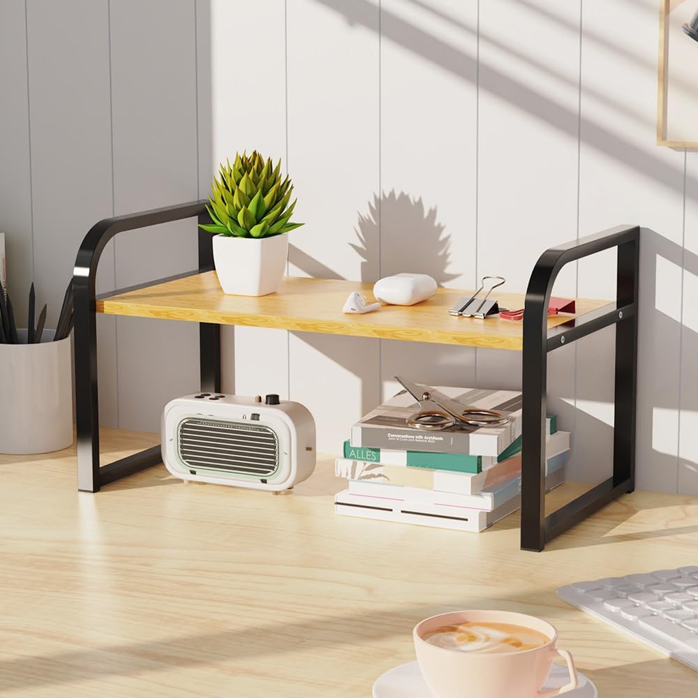 【ديكور رائع في المنزل/المكتب】يمكن استخدام رف المكتب الخاص بنا رأسًا على عقب، مما يزيد من وظيفته لتلبية احتياجاتك. يوفر الرف ذو الطبقة الواحدة مساحة تخزين واسعة للوازم المكتبية والكتب والشاشات ومزهريات التوابل والنباتات وما إلى ذلك.