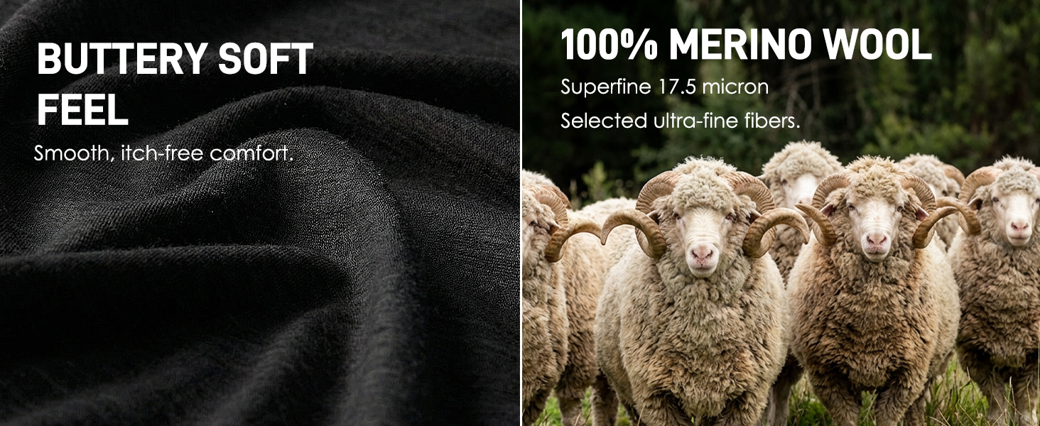 جميع المواسم: سواء كنت تتنزه سيرًا على الأقدام أو تتزلج أو مجرد قضاء يومك، فإن خصائص صوف ميرينو التي تنظم درجة الحرارة تضمن الراحة في أي بيئة.