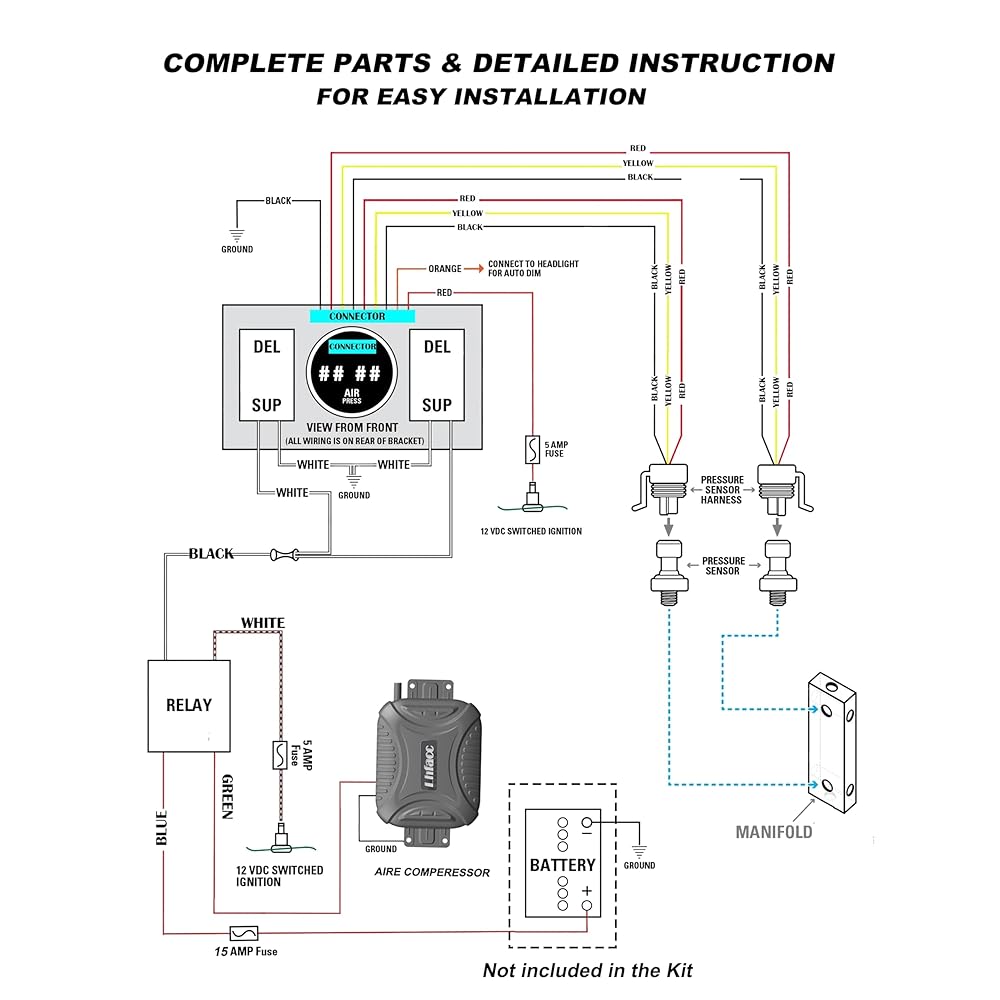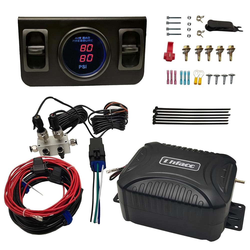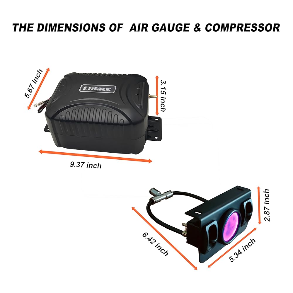 Installment: The package includes a compact air compressor, digital air gauge with electric paddle valves, pressure sensor with outlet block, relay, enough air line and Wires, providing all necessary mounting hardware for installation.