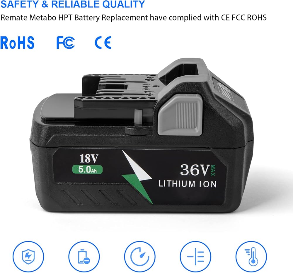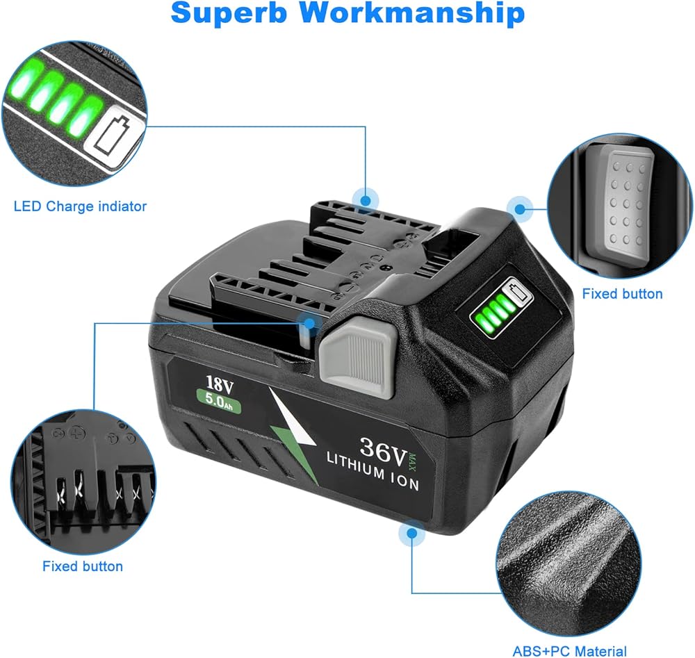 【نوع البطارية 】 5.0Ah/2.5Ah 18 فولت/36 فولت ليثيوم أيون؛ تتمتع البطارية البديلة لـ Metabo HPT بقوة أقوى ووقت استخدام أطول، مما يساعدك على الابتعاد عن مشاكل انخفاض البطارية أثناء العمل.