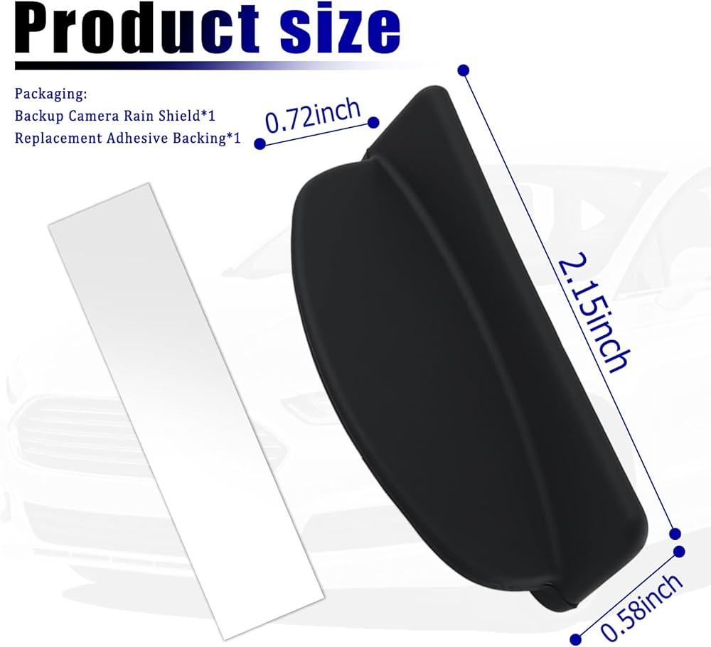 • Size Information: Please note that our rain shield for vehicle backup cameras size is 2.15*0.72*0.58 inch, the effective adhesive area of the adhesive backing part is 2*0.53 inch, the appearance is simple, will not affect the normal use of the reverse camera