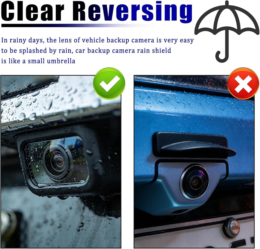 1. Upgraded car reverse camera rain shield, extended design for enhanced rain protection