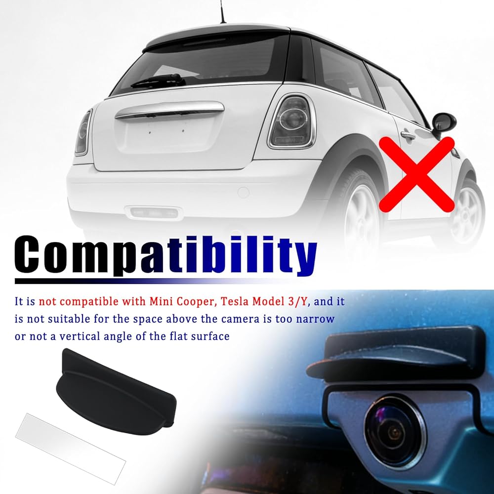• Compatibility: Our car backup camera rain cover is not a universal product, it is not compatible with Mini Cooper, Tesla Model 3/Y, and it is not suitable for the space above the camera is too narrow or not a vertical angle of the flat surface, please check the compatibility before buying
