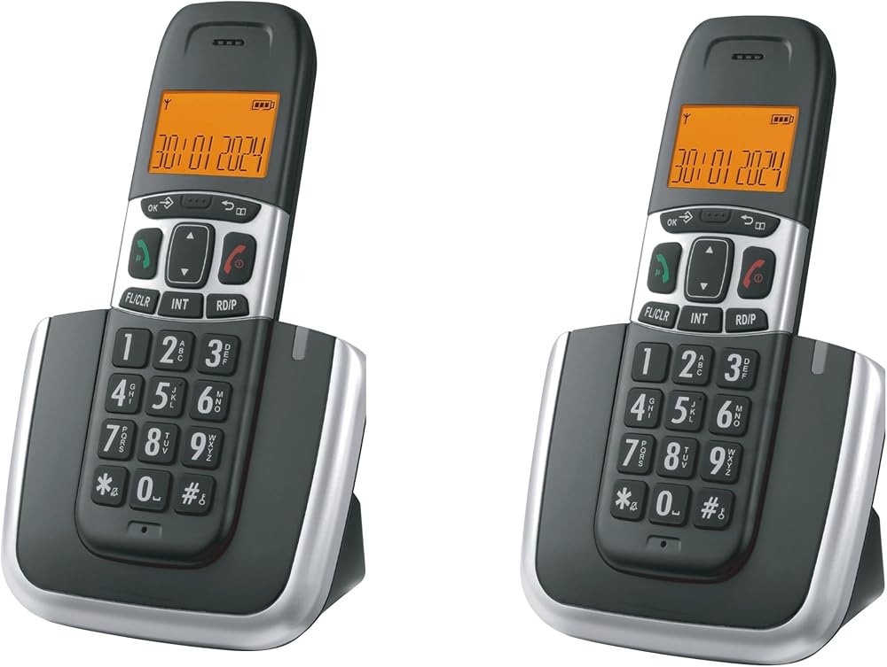 D1004 Cordless Landline Telephone, DECT with long unsurpassed range, big buttons and 1.8'' backlit display screen, Caller ID and call waiting, 50 Phonebooks Storage & 30 incoming numbers & 10 outgoing numbers, Full-Duplex SpeakerphoneIt also supports functions such as Pre-dial and Re-dial, Mute.