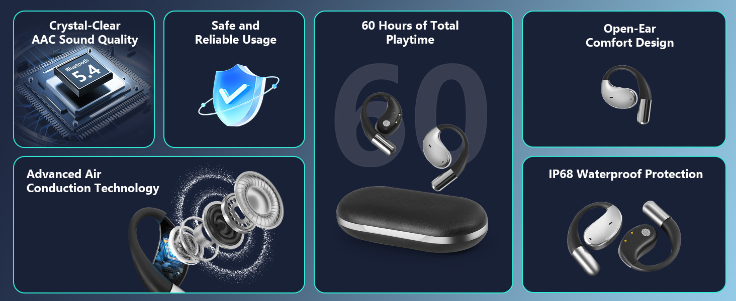 [اتصال متطور مع بلوتوث 5.4] ادفع نفسك إلى المستقبل مع سماعات الأذن اللاسلكية المفتوحة هذه التي تتميز بتقنية بلوتوث 5.4 المتطورة. انغمس في سرعات نقل البيانات فائقة السرعة والاتصال القوي الذي يمتد حتى 33 قدمًا. استمتع بتجربة صوت سلسة ذات زمن وصول منخفض منذ لحظة تحريرها من الحافظة الخاصة بها، وذلك بفضل ميزة التشغيل التلقائي والاتصال المبتكرة.