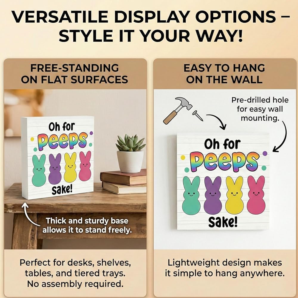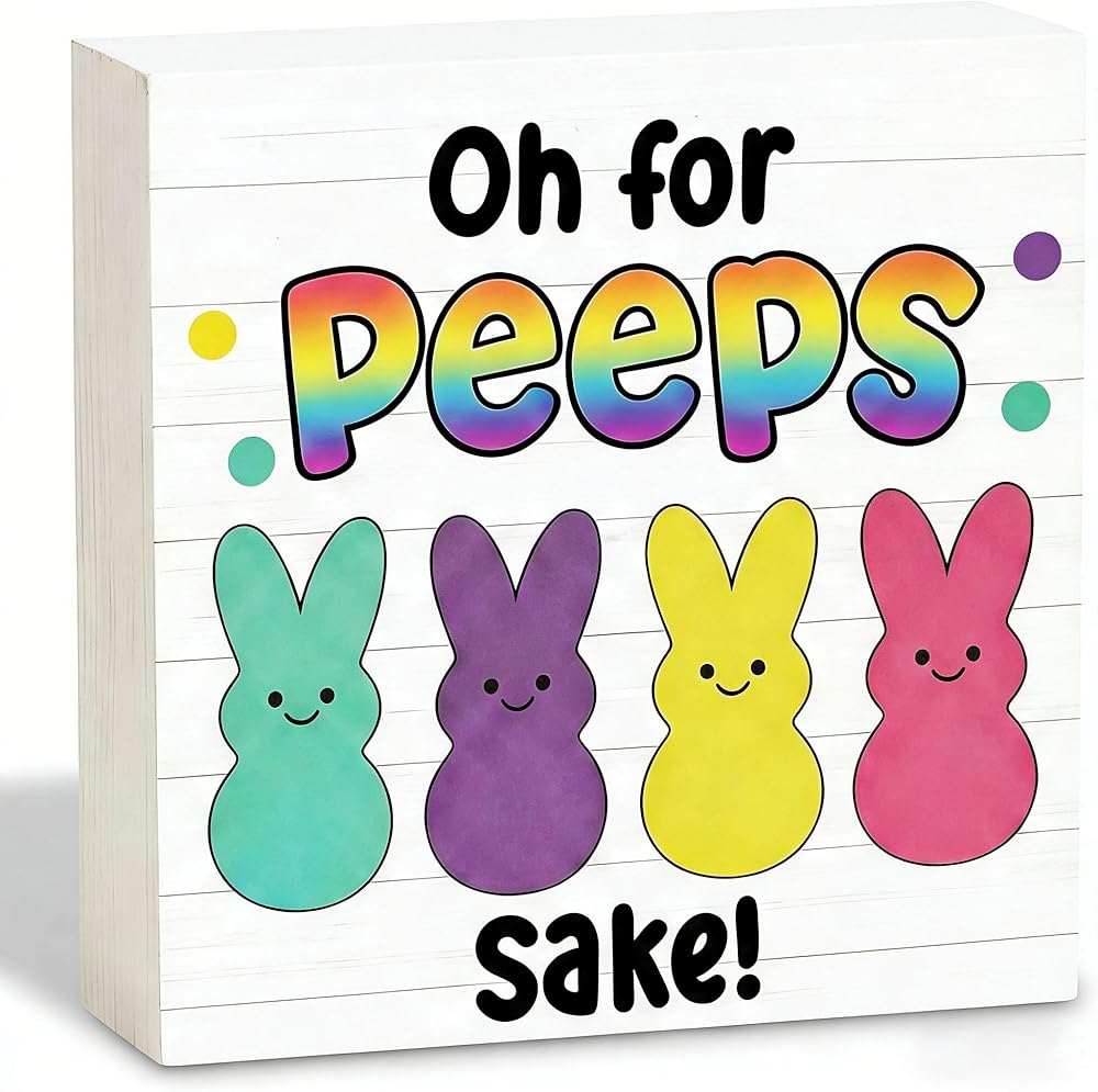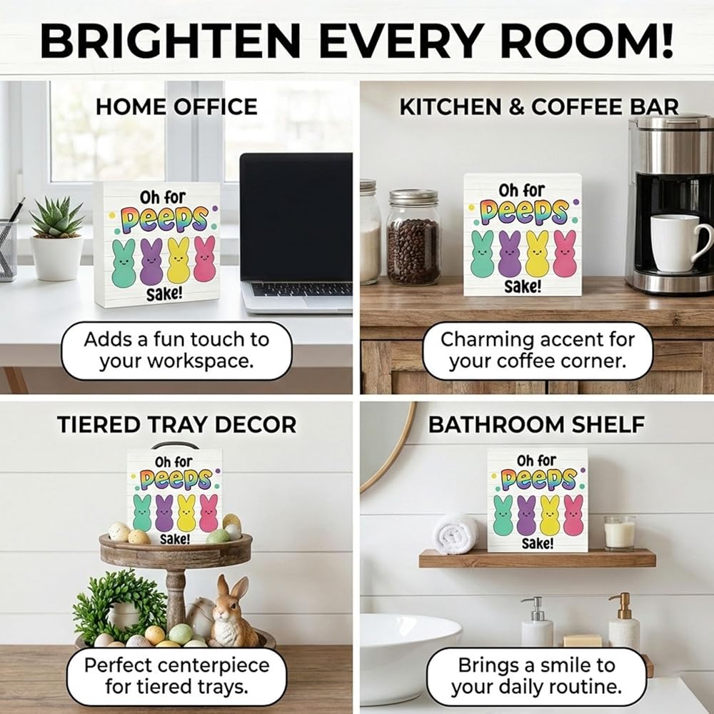 زينة عيد الفصح، ديكور أرنب مضحك، ديكور مكتب عيد الفصح، صندوق خشبي، علامة هدية، كتلة خشبية، صندوق لوحة، علامة للمنزل، المزرعة، المطبخ، رف الحمام، ديكور الطاولة، أوه للزقزقة (أبيض)