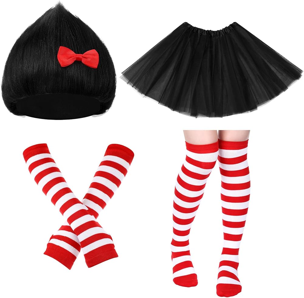 مساعد للحفلات التنكرية: مجموعة زي الشعر المستعار الأزرق هذه رائعة للعب الأدوار في حفلة زي القراءة؛ توجد مجموعة واحدة من الشعر المستعار، وفيونكة حمراء، وتنورة توتو، وجوارب مخططة وقفازات في العبوة، مناسبة للعب الأدوار مع الأصدقاء والاستمتاع بالارتداء معًا.