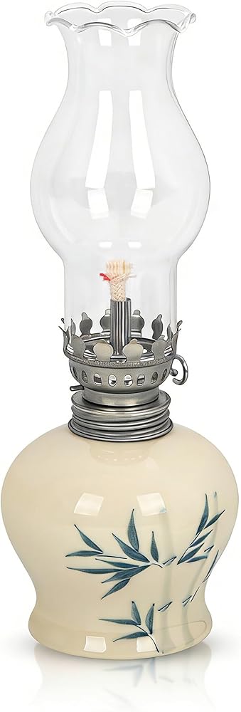 Step back in time with our Vintage Oil Lamp – an icon that answers to names like oil lamps for indoor use, hurricane lamp, kerosene lamp, oil lantern, kerosene lantern. Standing at 18cm, it marries a ceramic base with a serene blue - bamboo motif and a clear glass chimney, echoing classic kerosene lamps' charm. Crafted from premium ceramic and glass, durability and beauty go hand - in - hand. The ceramic base flaunts a smooth, glossy finish, while the glass chimney (a hallmark of hurricane lamp design) ensures excellent light diffusion. It casts a warm, inviting glow, transforming any room – be it your living room for a snug night, bedroom for vintage romance, or café for enhanced ambience. Here's the magic: it's not just an oil/kerosene lantern. Add aromatherapy essential oil to the lamp oil, light the wick, and voila – it doubles as a aromatherapy lamp! Let gentle light and delightful scents wrap your space. Using it is a cinch: fill the reservoir with lamp oil (not included), ignite the wick. The glass chimney shields the flame from drafts for a steady burn. When cleaning or refilling, the simple design makes maintenance a breeze. More than a lighting fixture, it's a statement. Ideal for vintage decor lovers, a heartwarming housewarming gift, or a unique touch for commercial spaces chasing an antique vibe. Let this multi - named oil lamp spark conversations and infuse timeless charm into your home or business – with or without the bonus of aromatherapy!