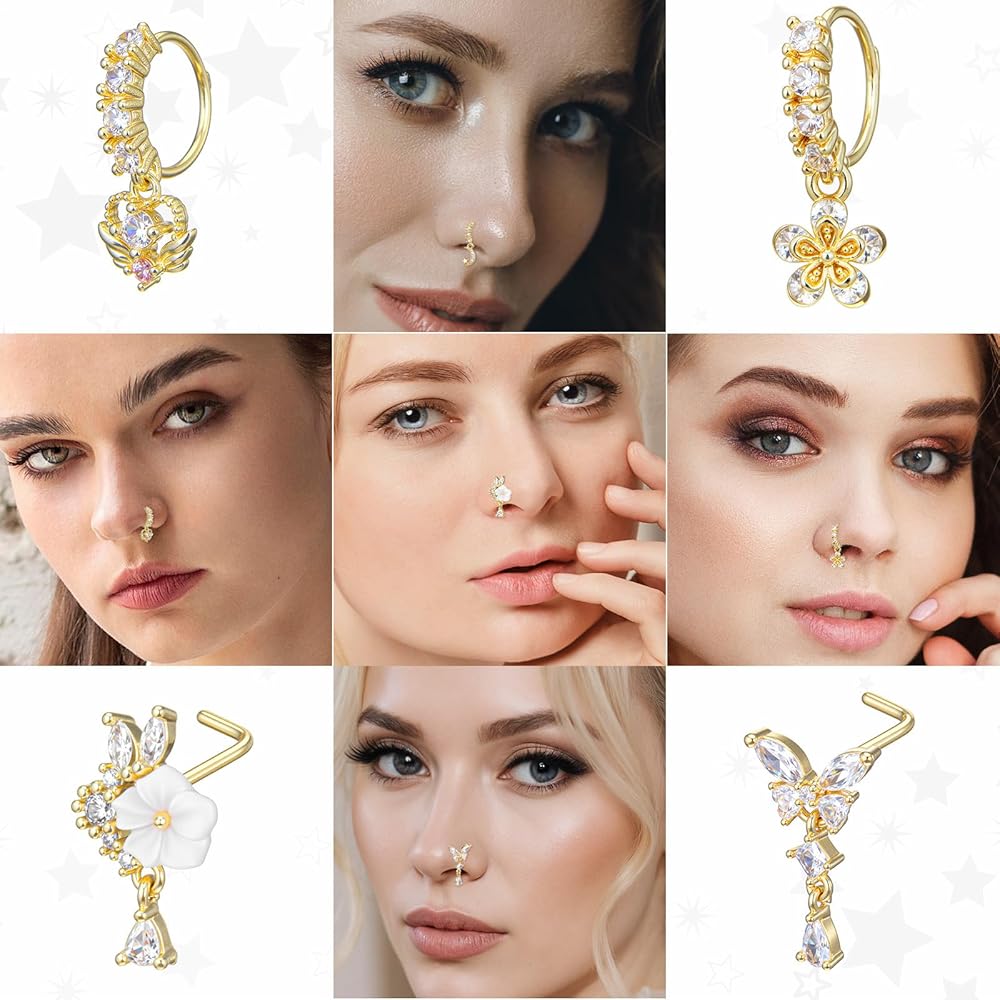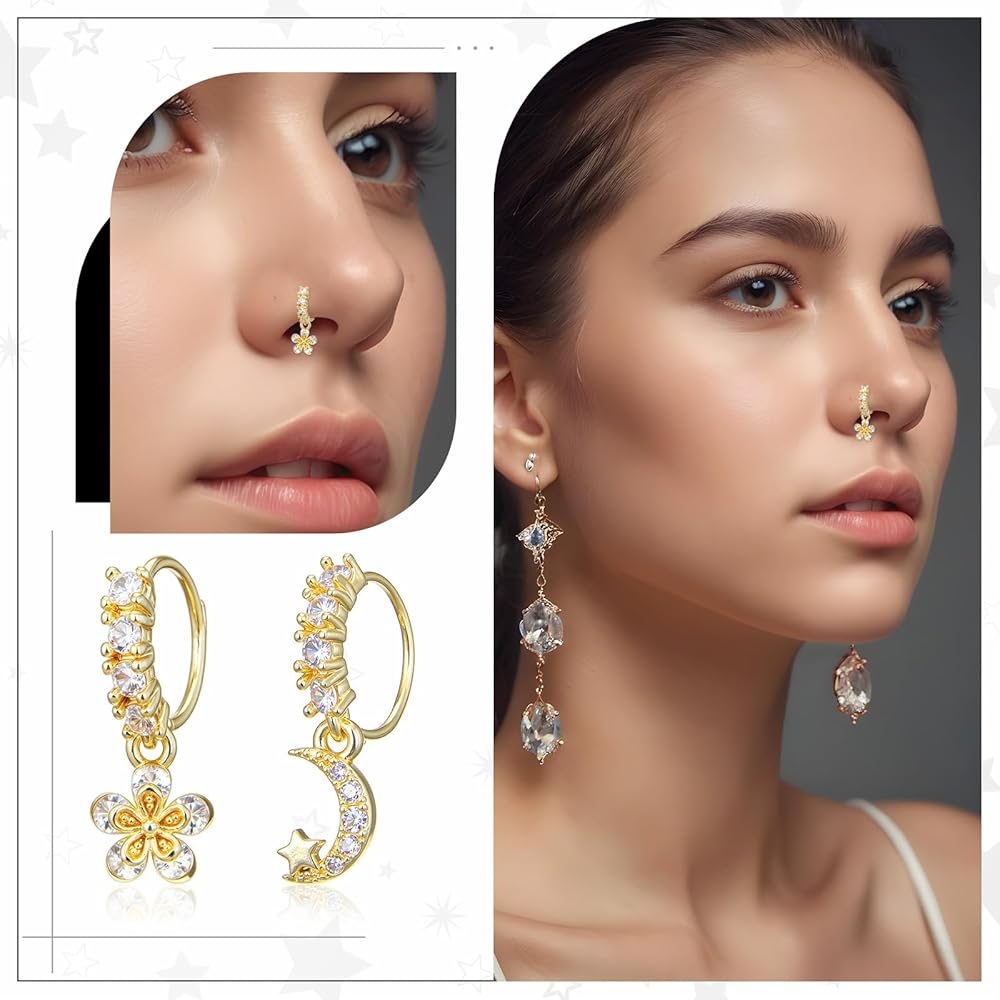 Stylish Design: Our dangling nose rings for women feature a variety of designs, including flowers, stars, and moons. These unique styles allow you to express your personality and match any outfit