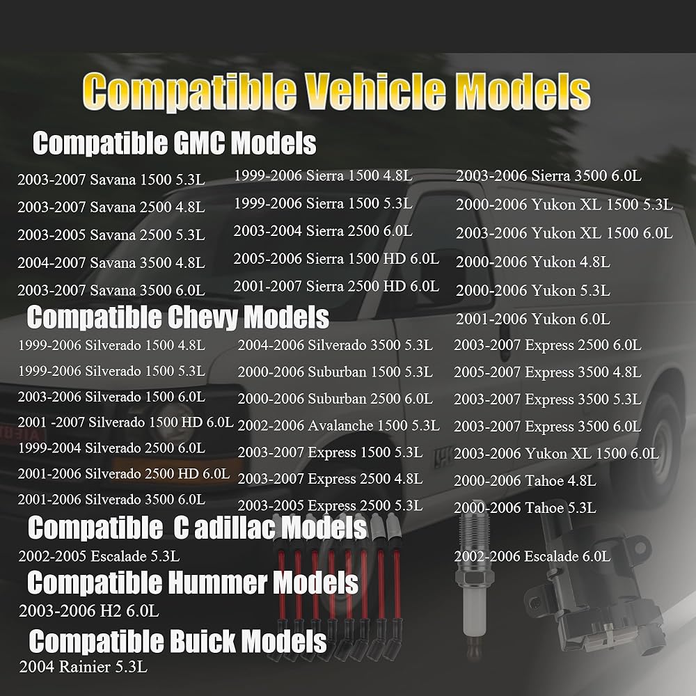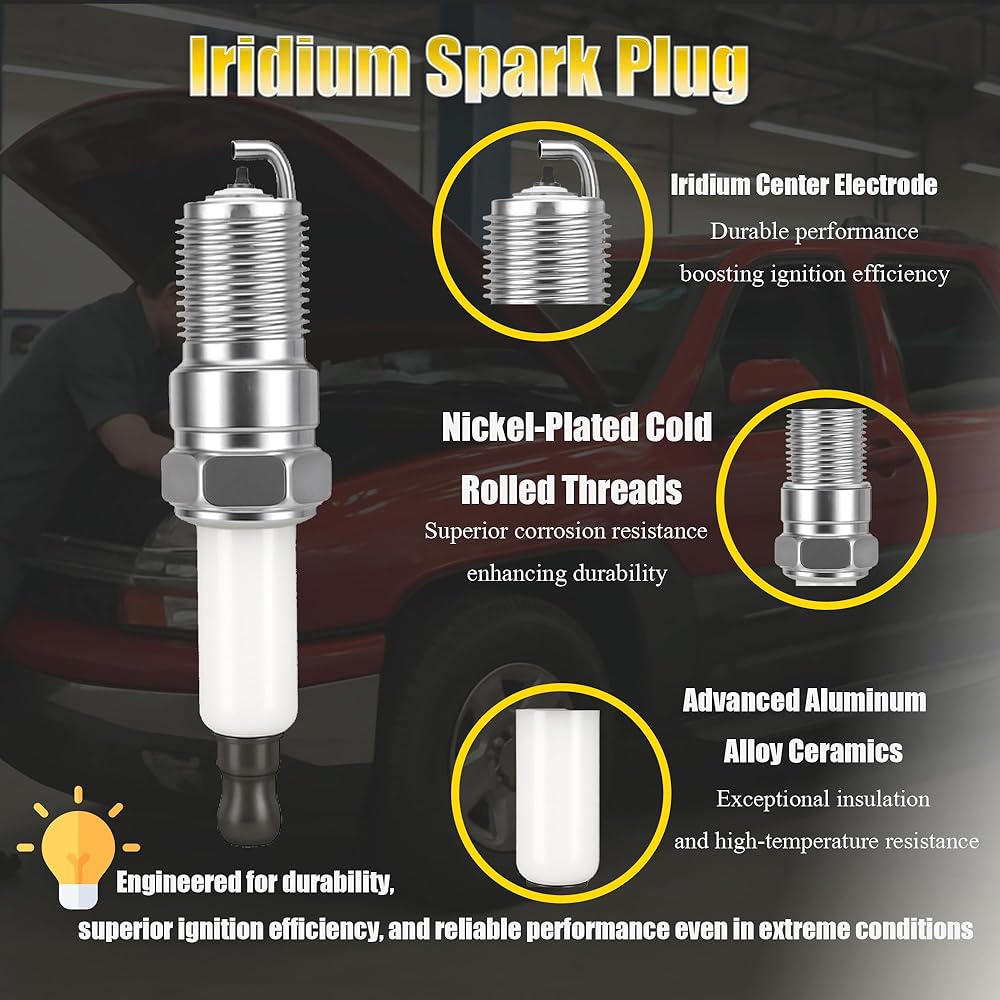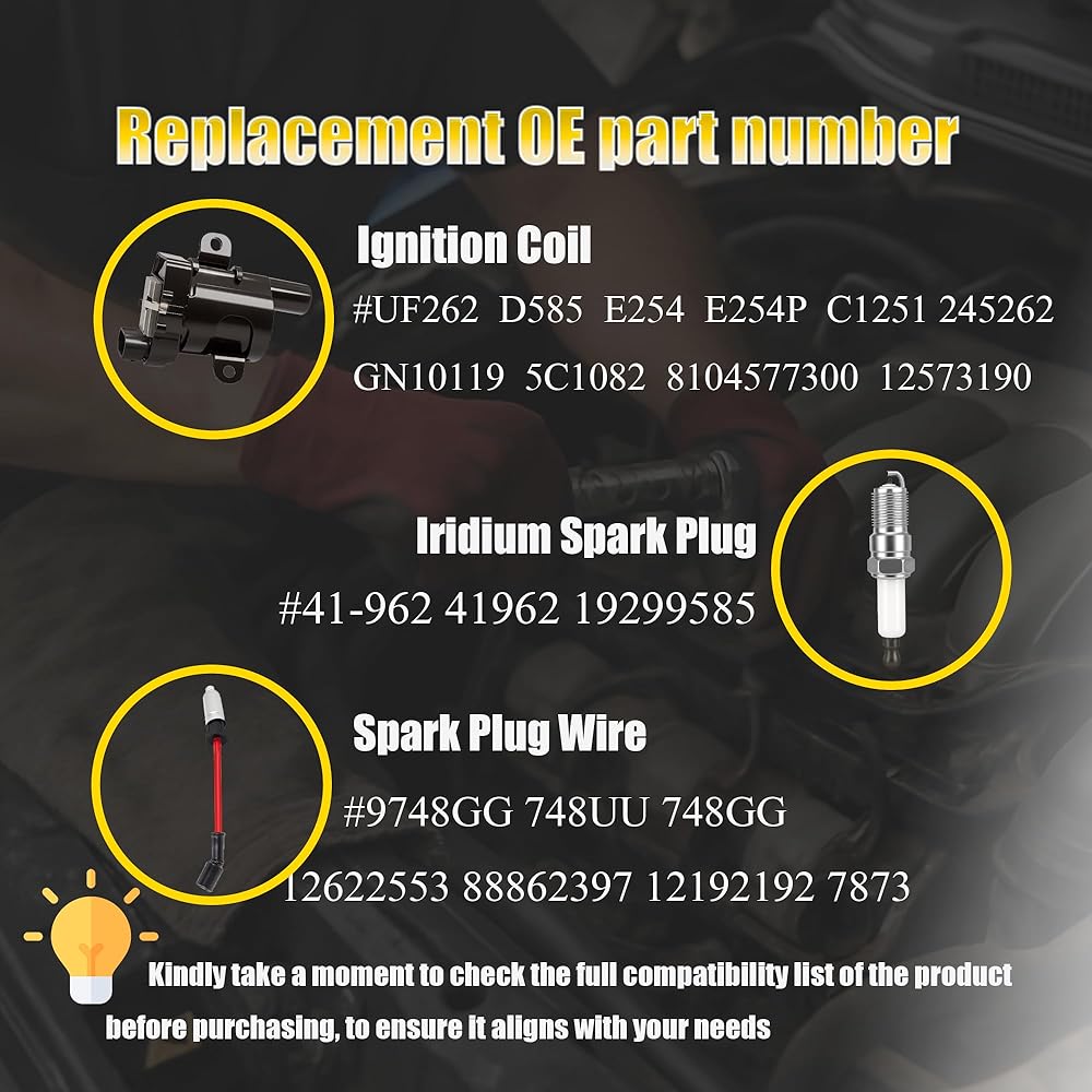 حزمة ملفات الإشعال المستديرة UF262 / شمعات إشعال إيريديوم مزدوجة / أسلاك توصيل الإشعال لسيارة Chevy Avalanche Express Tahoe Silverado Suburban 1500 HD GMC Savana Sierra Yukon HUMMER H2 V8 4.8L 5.3L 6L 8PSC
